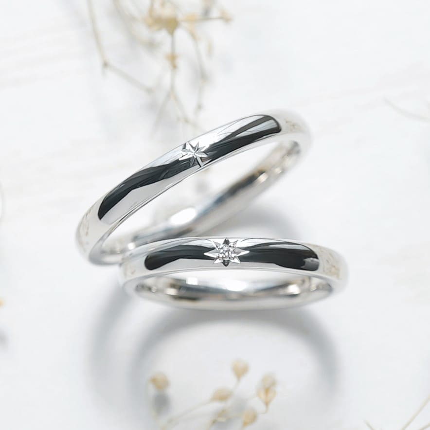 星彫りが特徴的な結婚指輪をご紹介します。