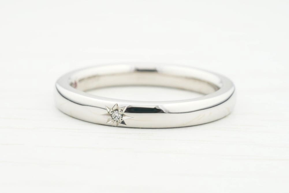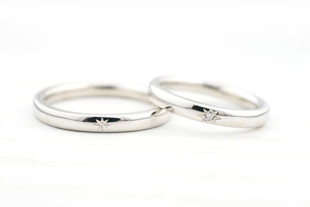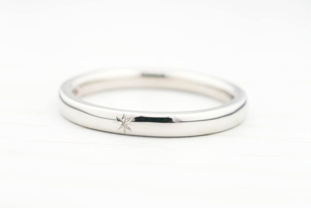 シンプルにワンポイントの星彫りを施した結婚指輪