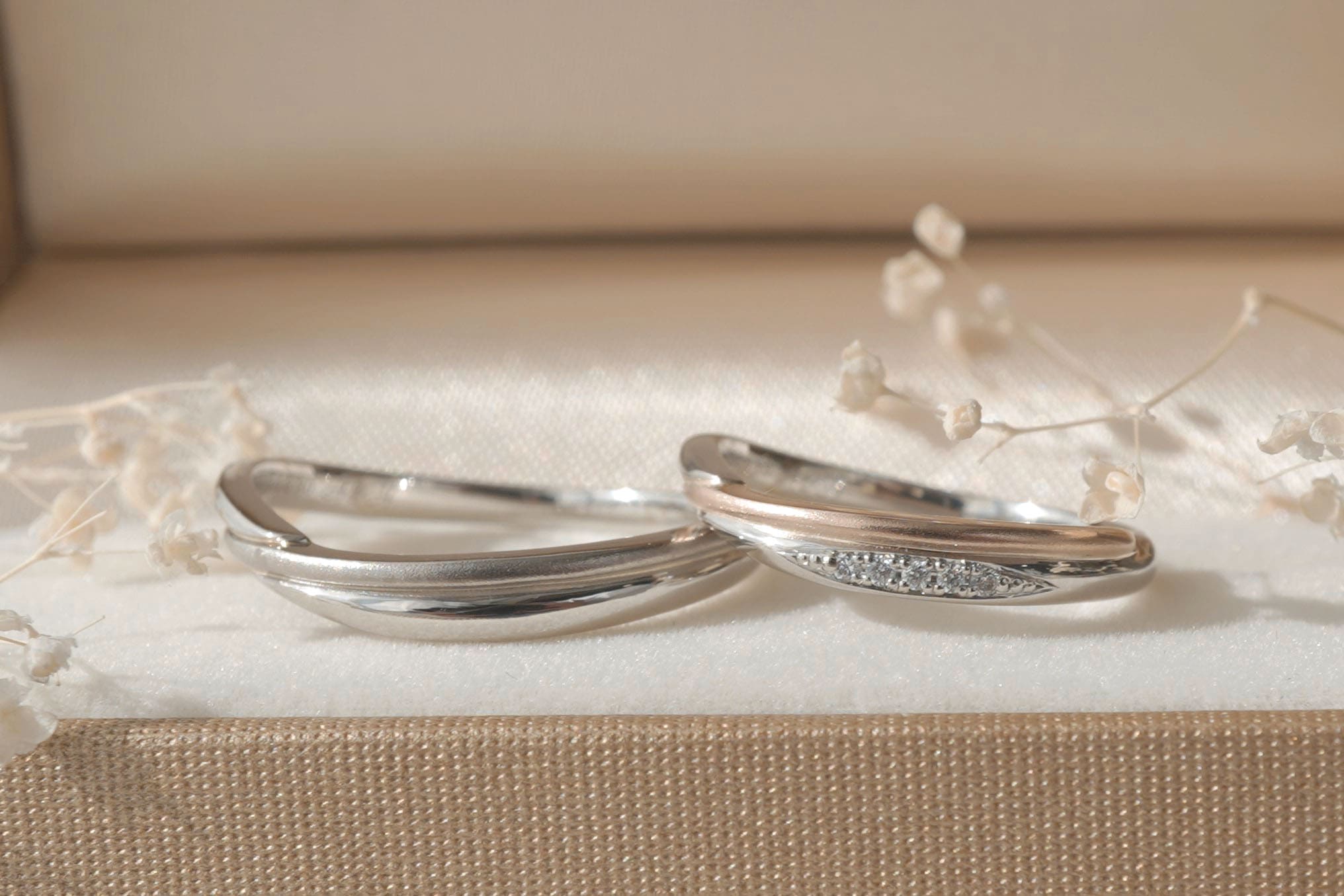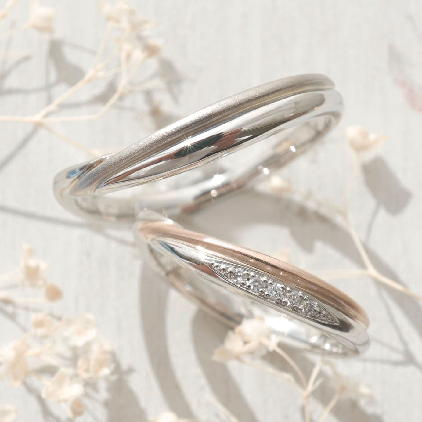 異なる素材でお揃いの表面加工の結婚指輪をオーダーいただきましたのでご紹介いたします。