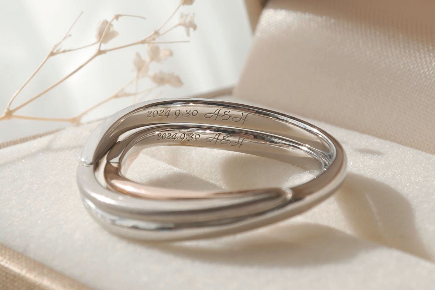 内文字には、おふたりの記念日とイニシャルがレーザー刻印されております。