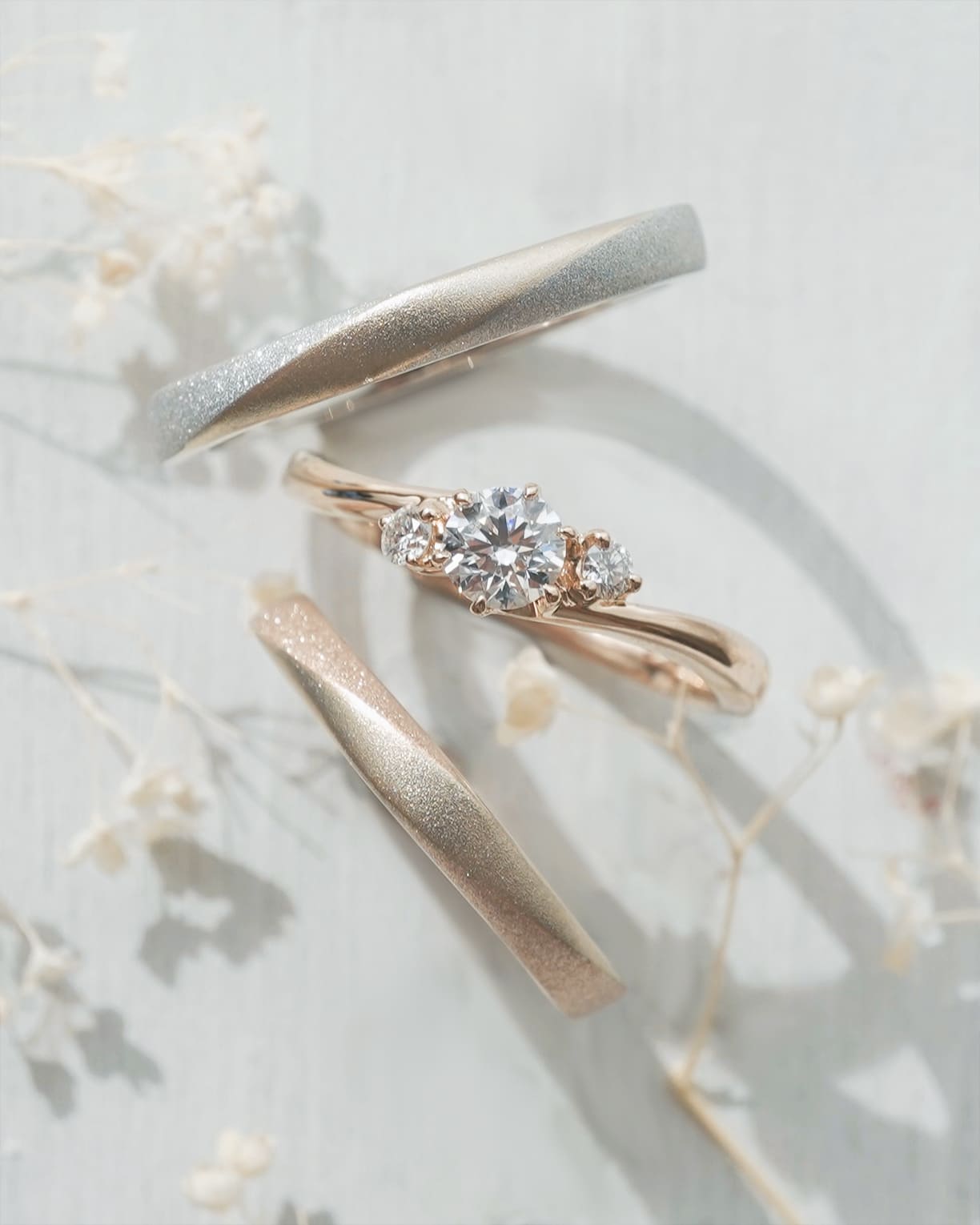 かけがえのない二人が(2つの脇石ダイヤ)絆を育み、より愛(センターダイヤ)を強く輝かせるデザイン