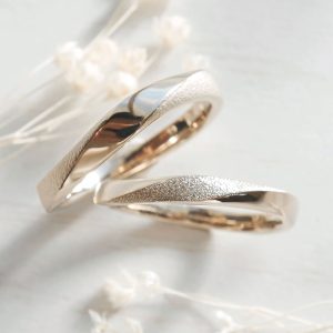 ひねりデザインにオリジナルの表面加工を加えた結婚指輪