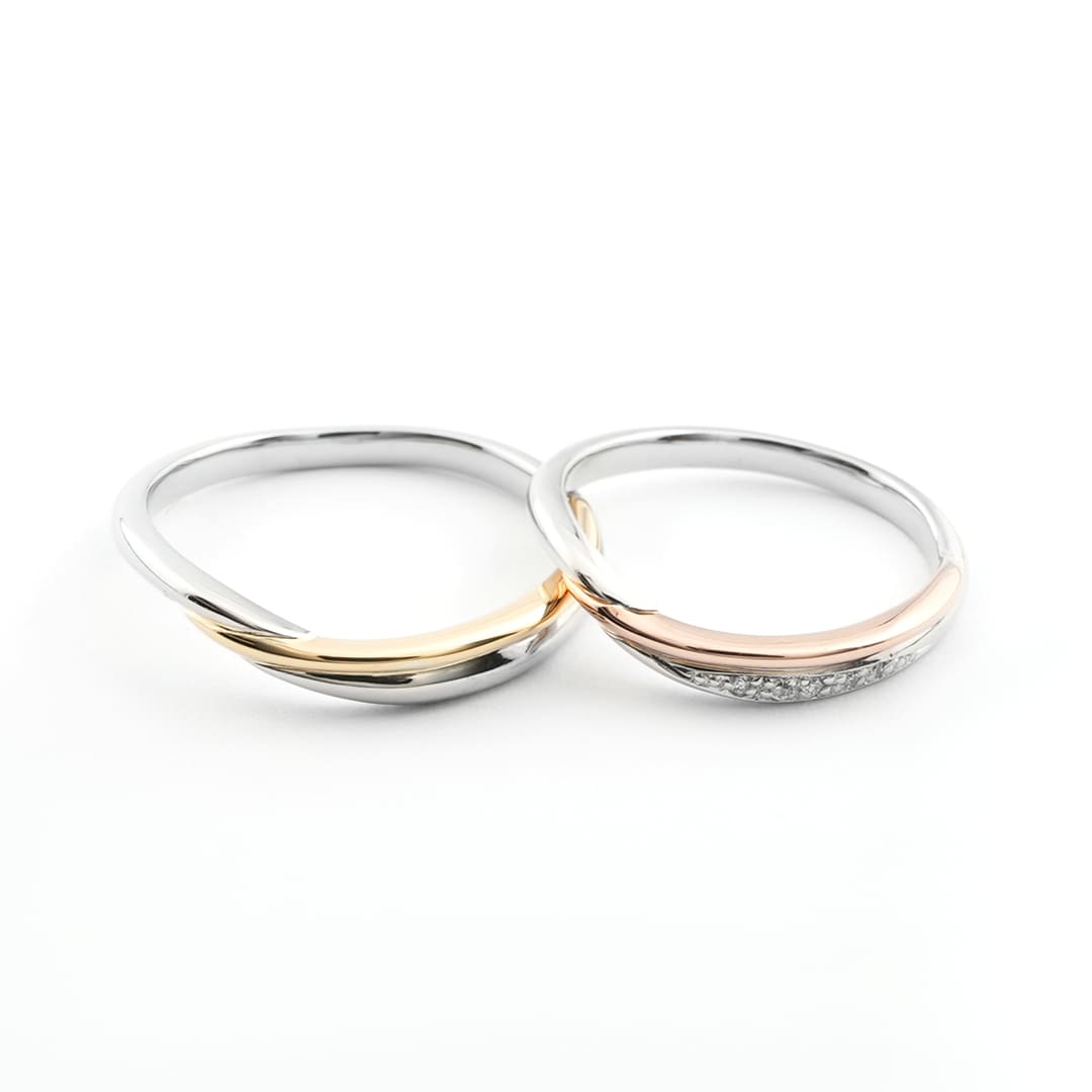 雲海のようにゆっくりと流れる雲と時を連想させるデザイン どちらもコンビネーション(異素材)を組み合わせた結婚指輪です