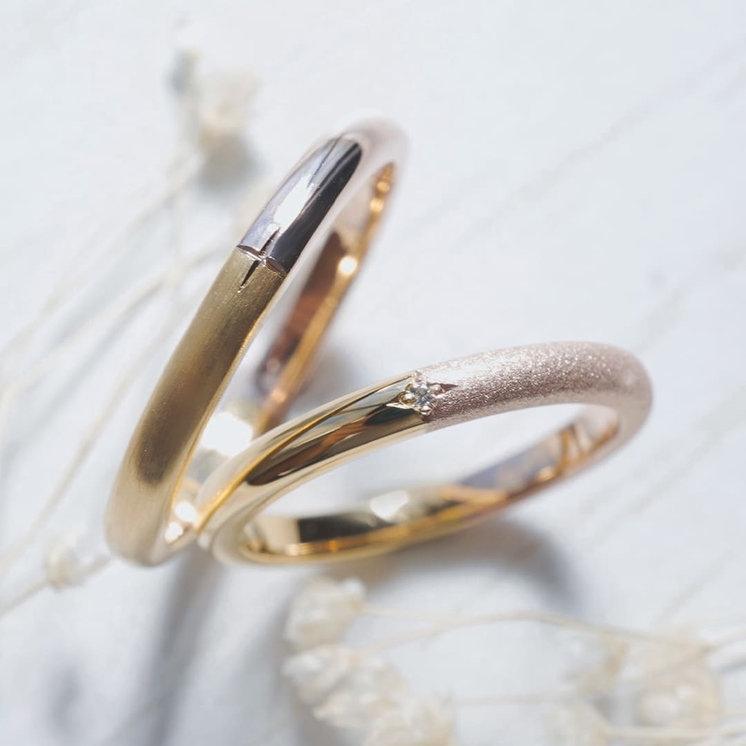 好きな素材を組み合わせて部分的にオリジナルを施した結婚指輪