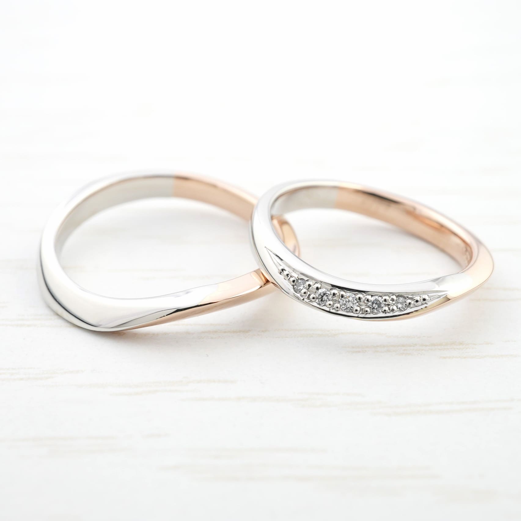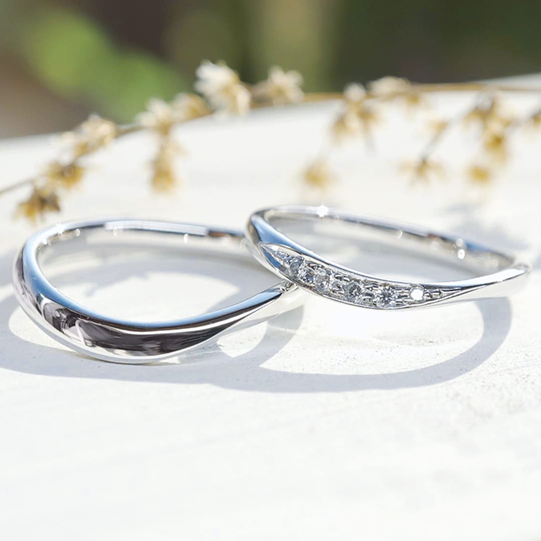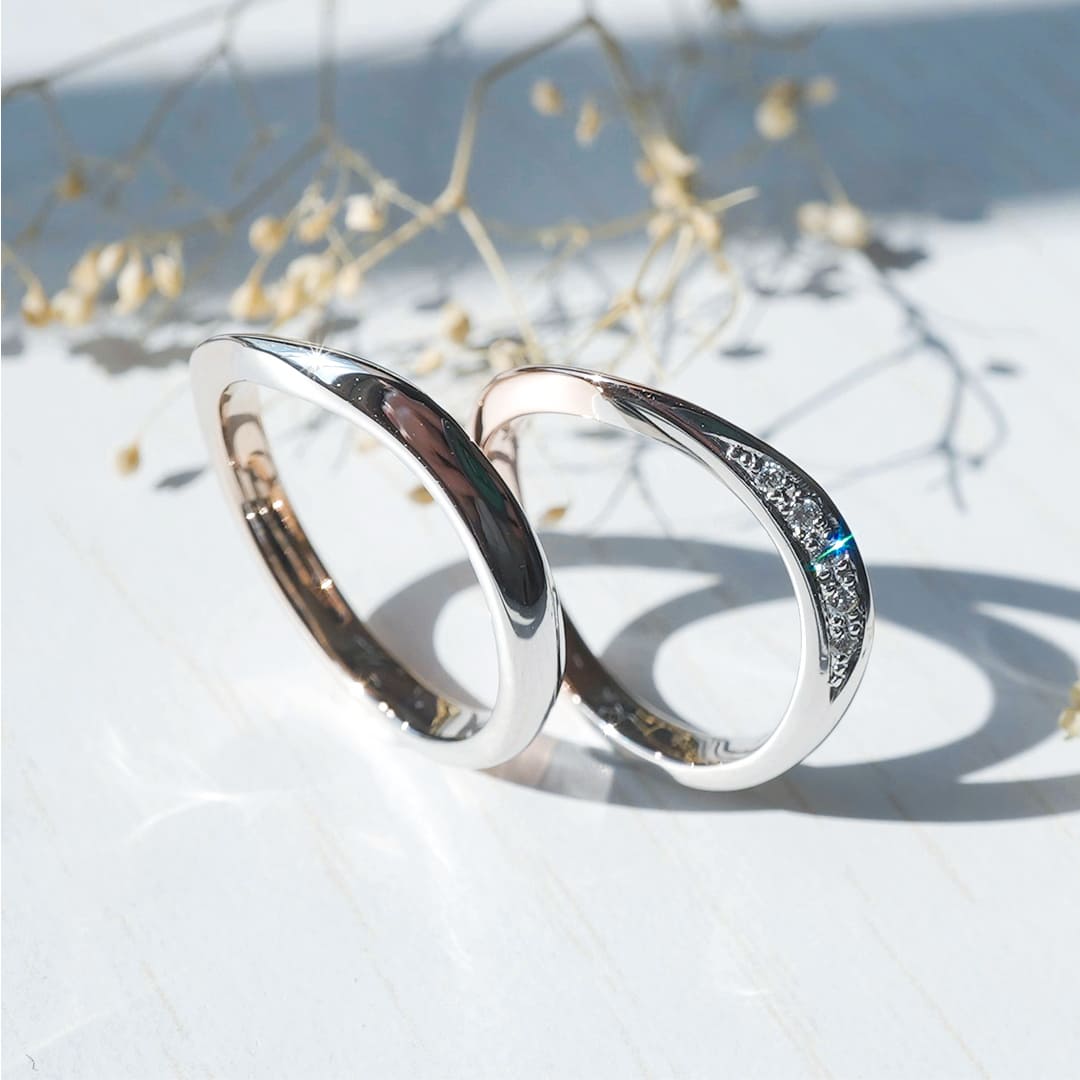 ウェーブとひねりが生み出す、優し気な結婚指輪