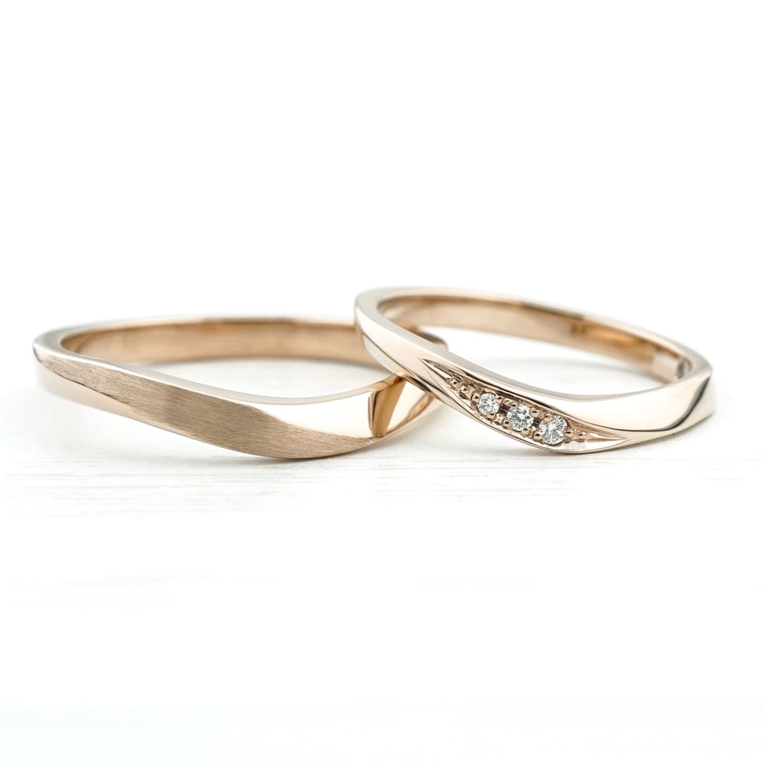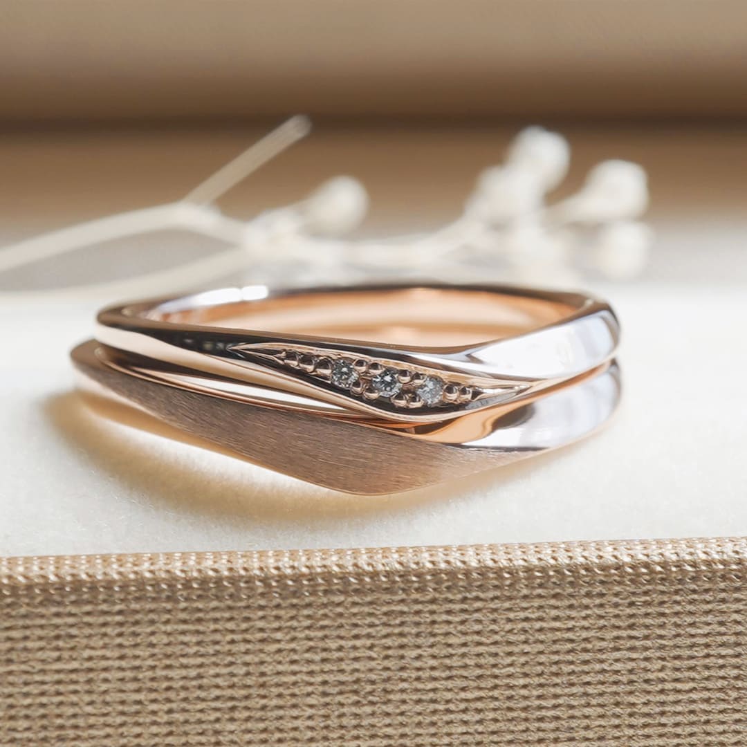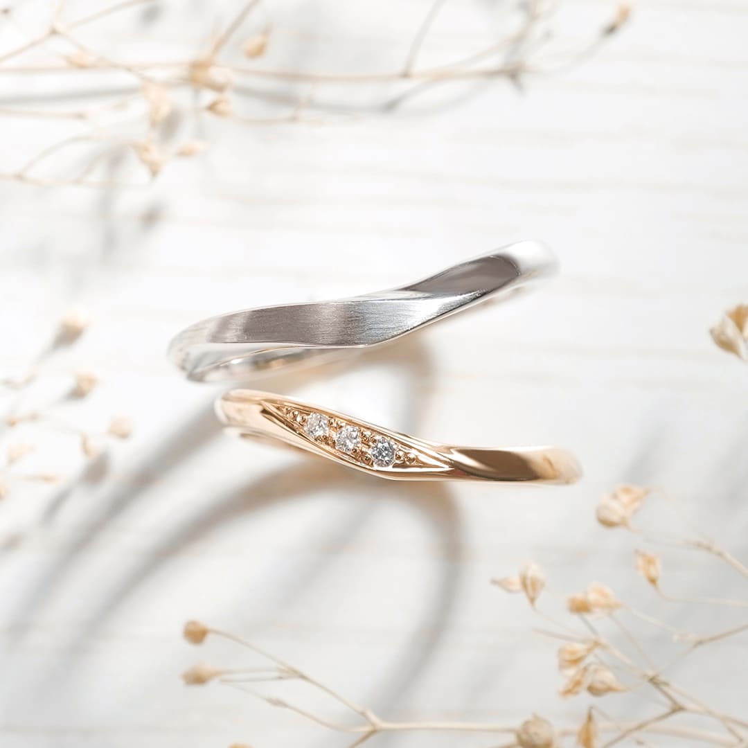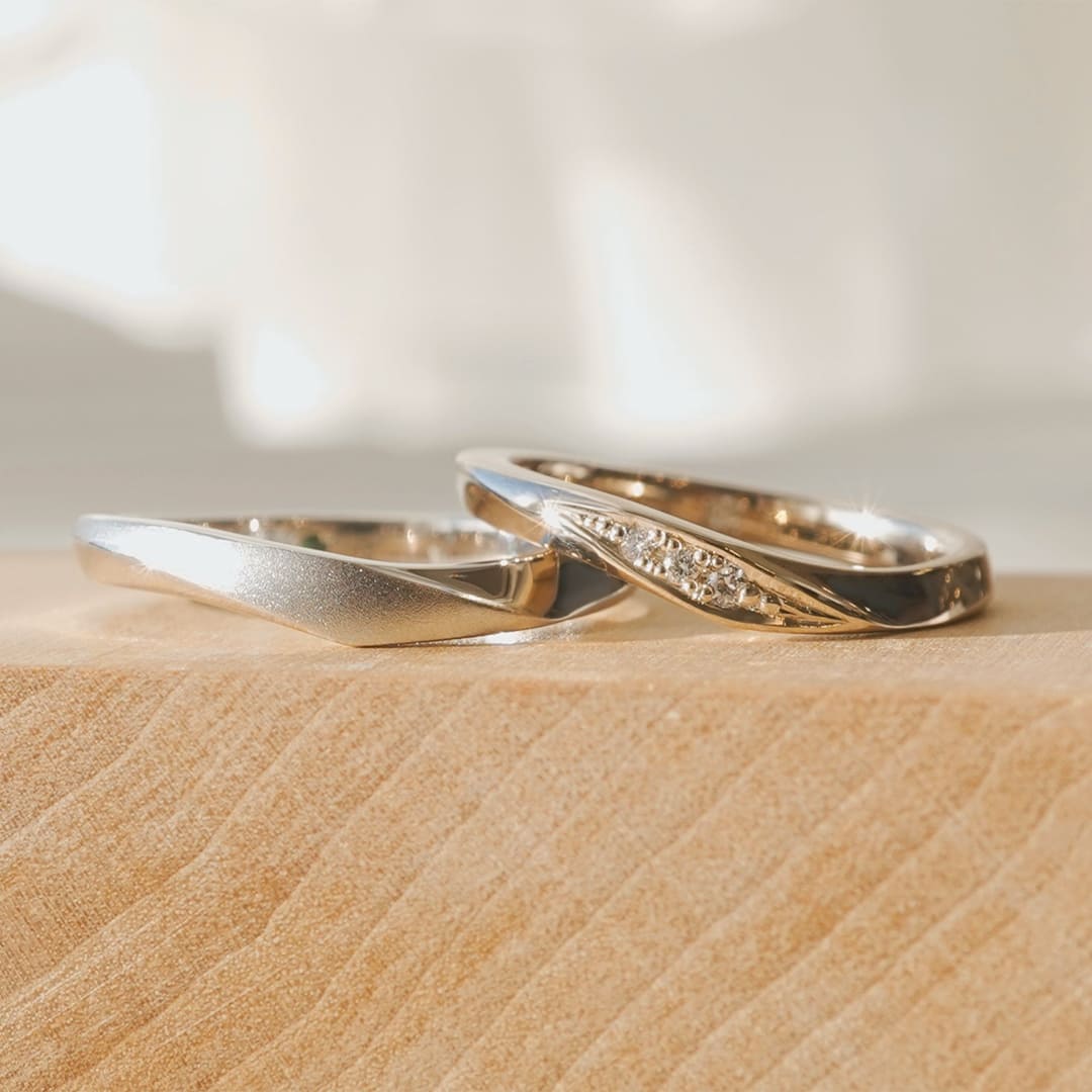 V字にひねりを加えたスタイリッシュな結婚指輪