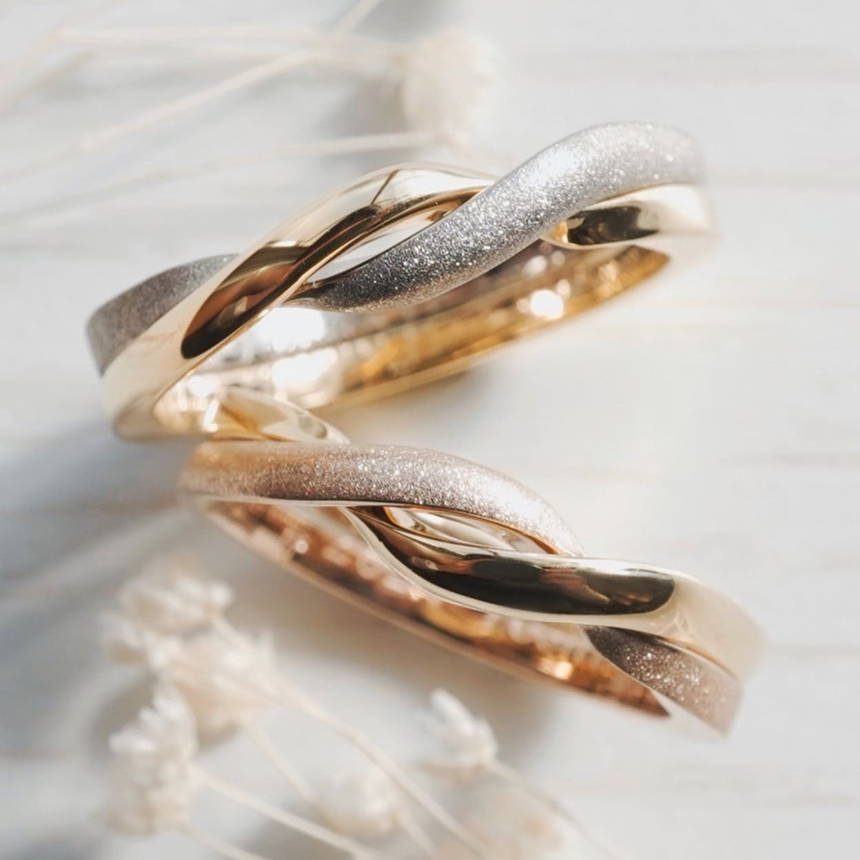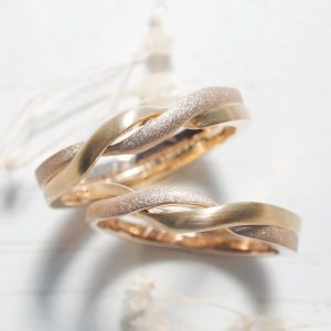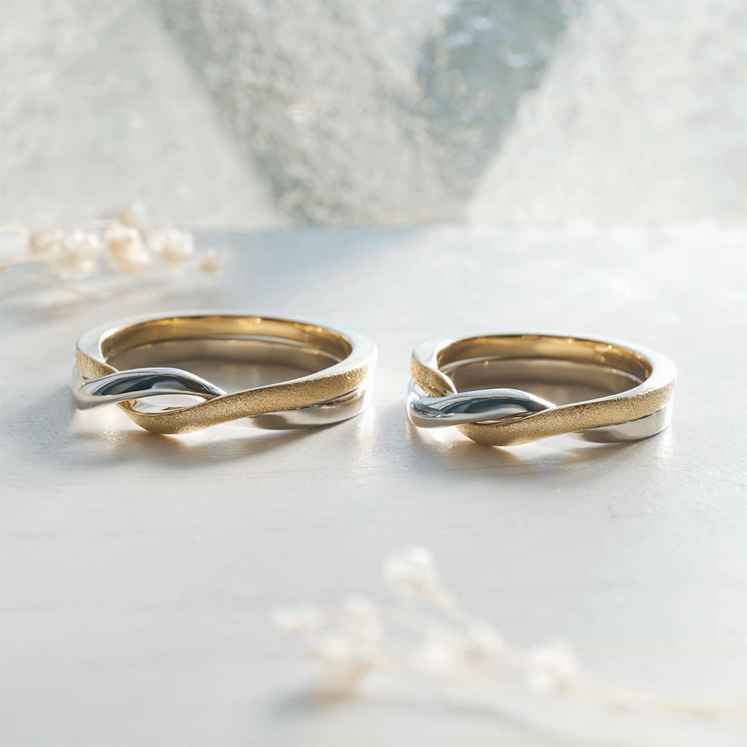 お互いの好きな素材、加工で仕上げた結婚指輪