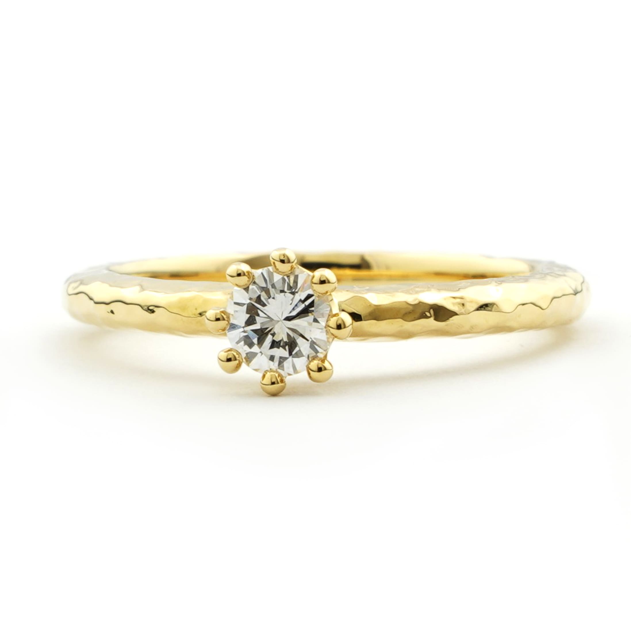 古典的な爪形と形状が美しいエアリー。 細かい槌目模様がキラキラと輝くデザインです。 槌目や古風なデザインがお好きな方にお勧めです。 指輪側面まで槌目を施しているので、どの方向にも輝きを放ちます。 センターダイヤモンドは0.175~0.225ctの範囲からお選びいただけます。 上記ダイヤモンドサイズ以上をご希望の方はお問い合わせください。