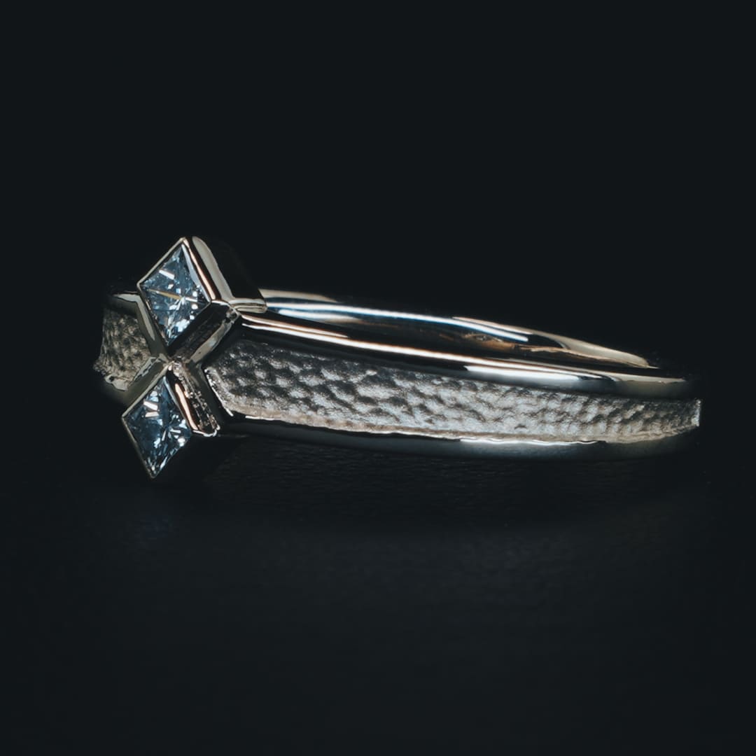雲海広がる幻想的な瞬間は時間を忘れ、幸せな人のことを想い浮かべる lady’sリングは日の出をダイヤモンドで表現 細かな槌目は雲海をイメージして作製しています