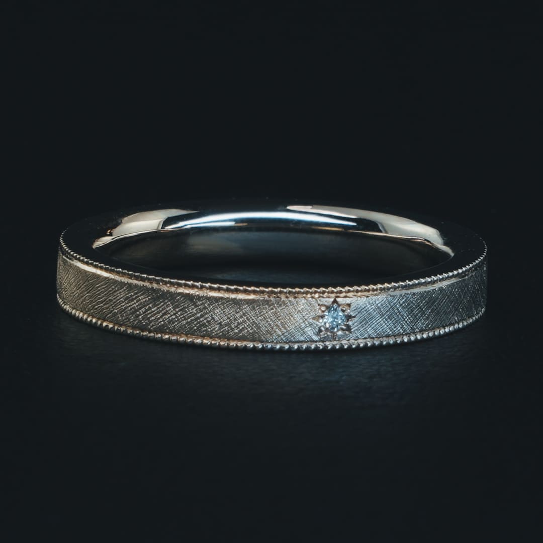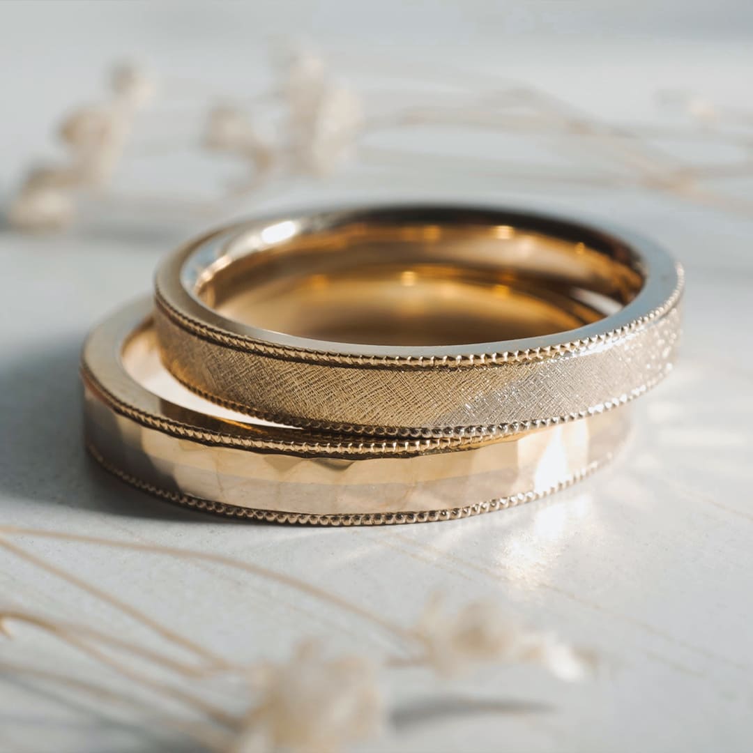 槌目模様とフレア加工のコンビネーションリング