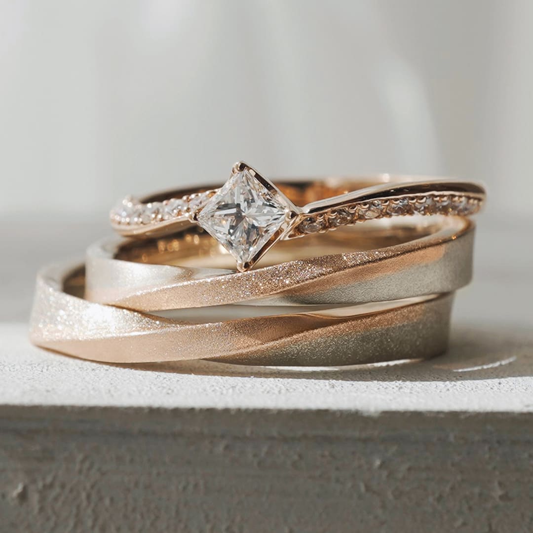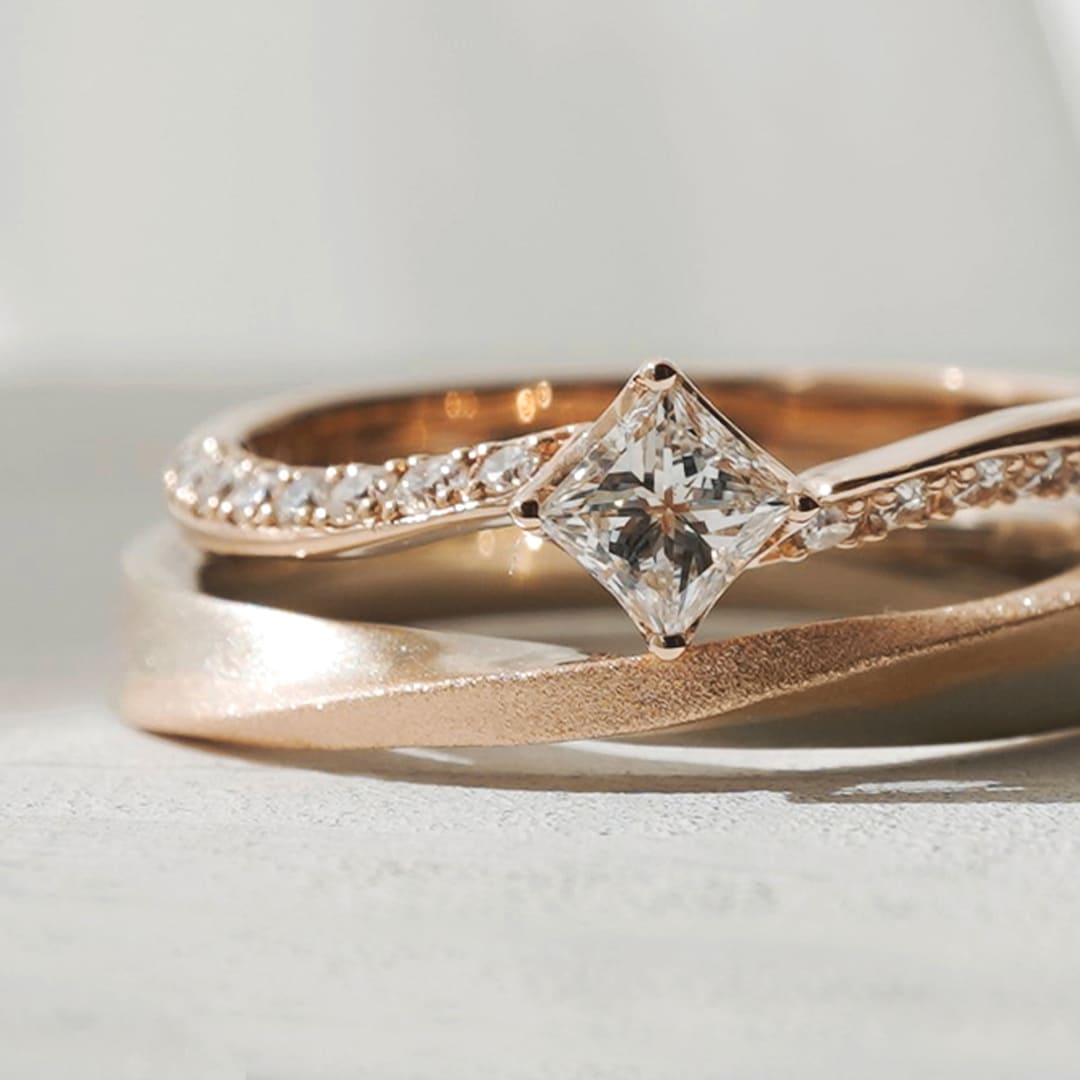 プリンセスカットが輝く婚約指輪