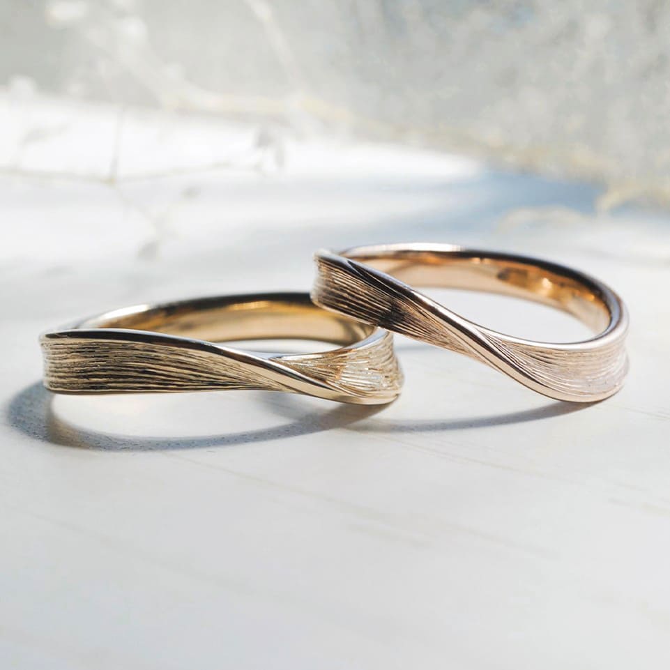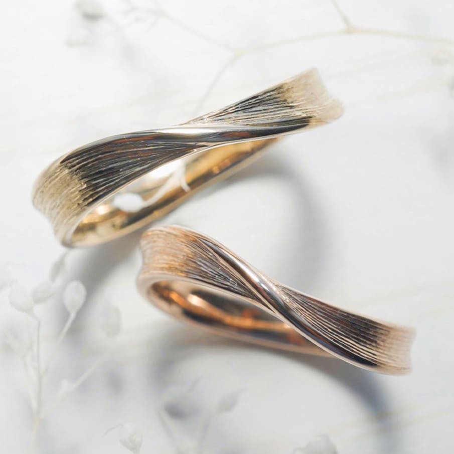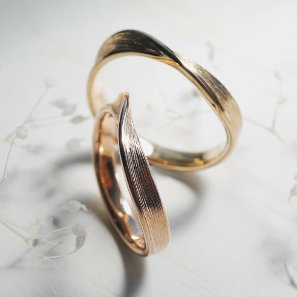 Men’s(左):K18シネマ 最大幅3.8mm 厚み平均1.8mm Lady’s(右):最大幅3.4mm 厚み平均1.8mm