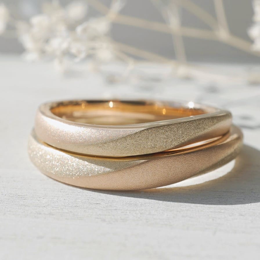 素材を組合わせたひねりデザインの結婚指輪