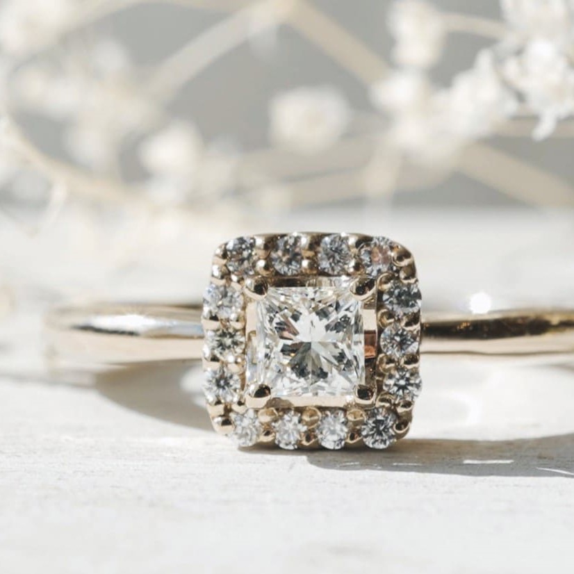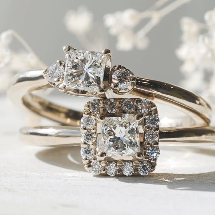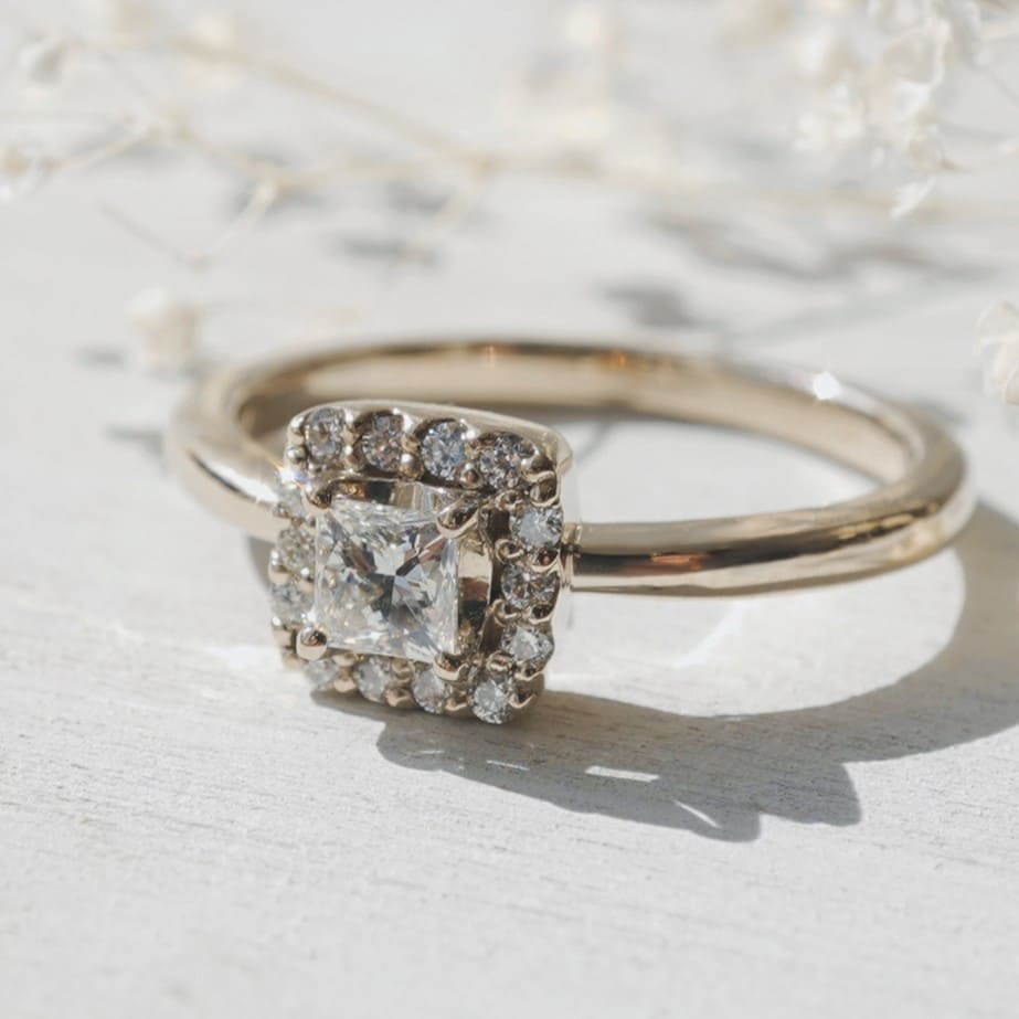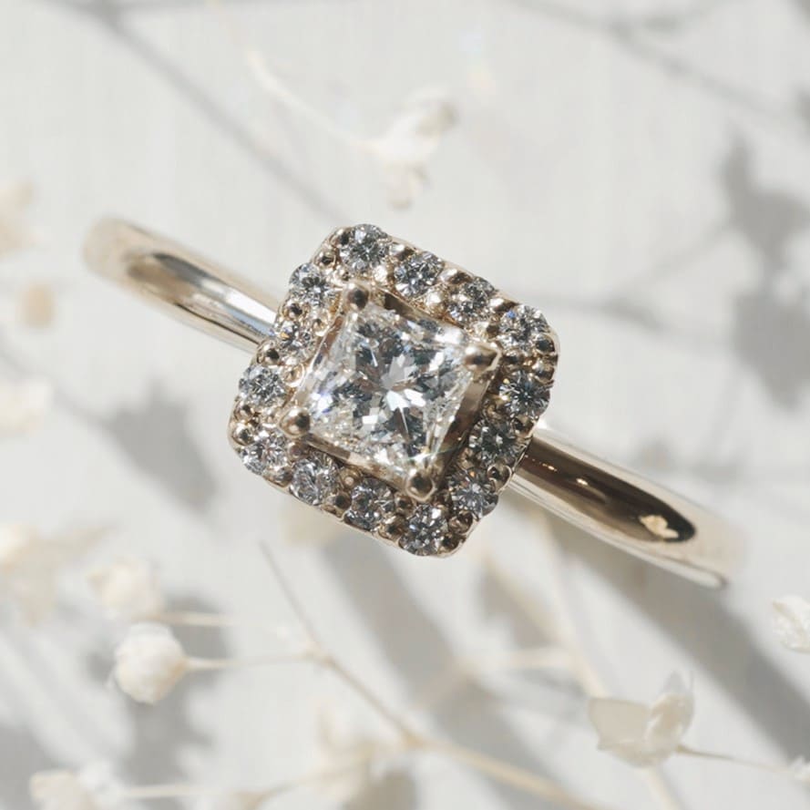 プリンセスカットのダイヤモンド0.2ctをセンターに配置した婚約指輪