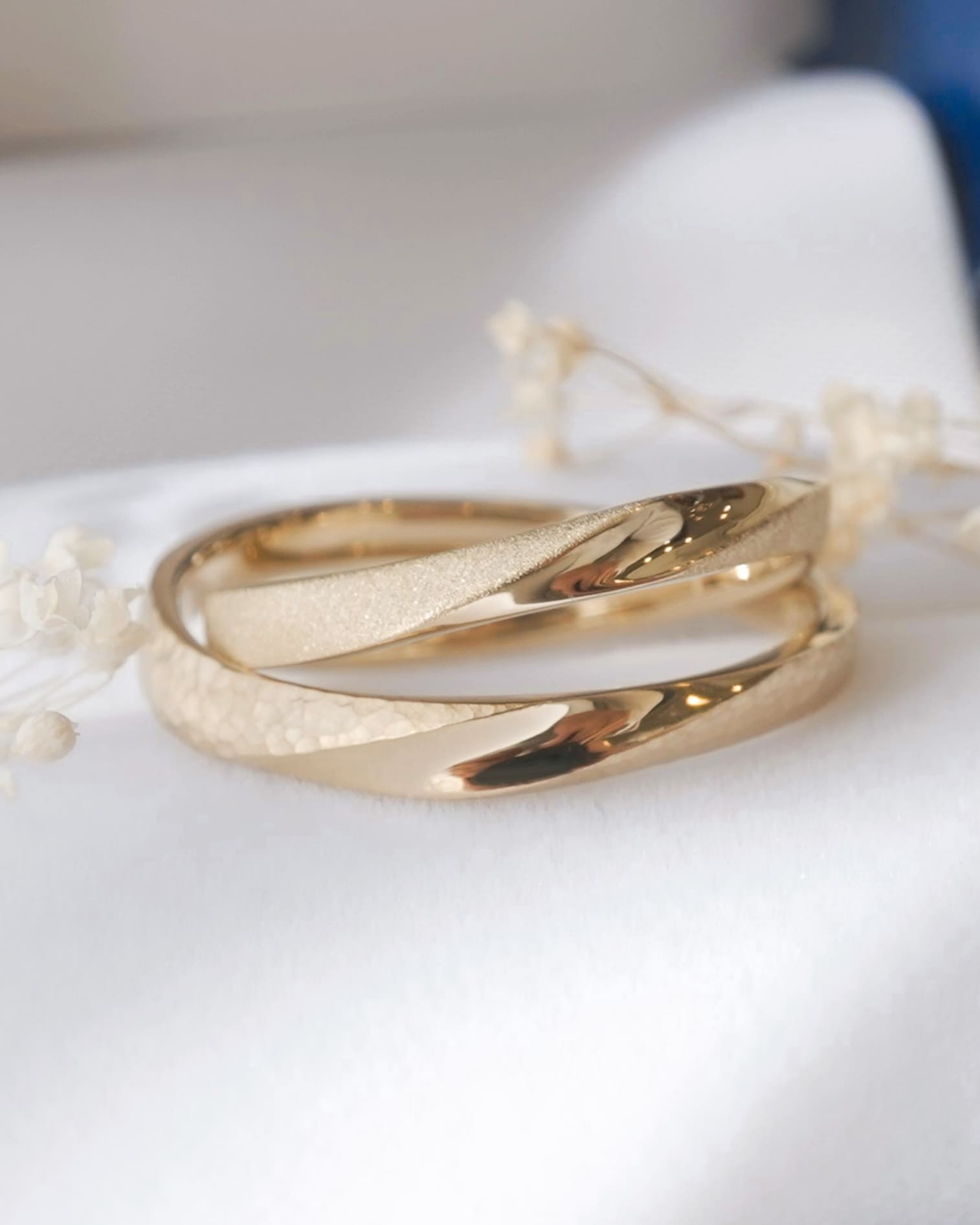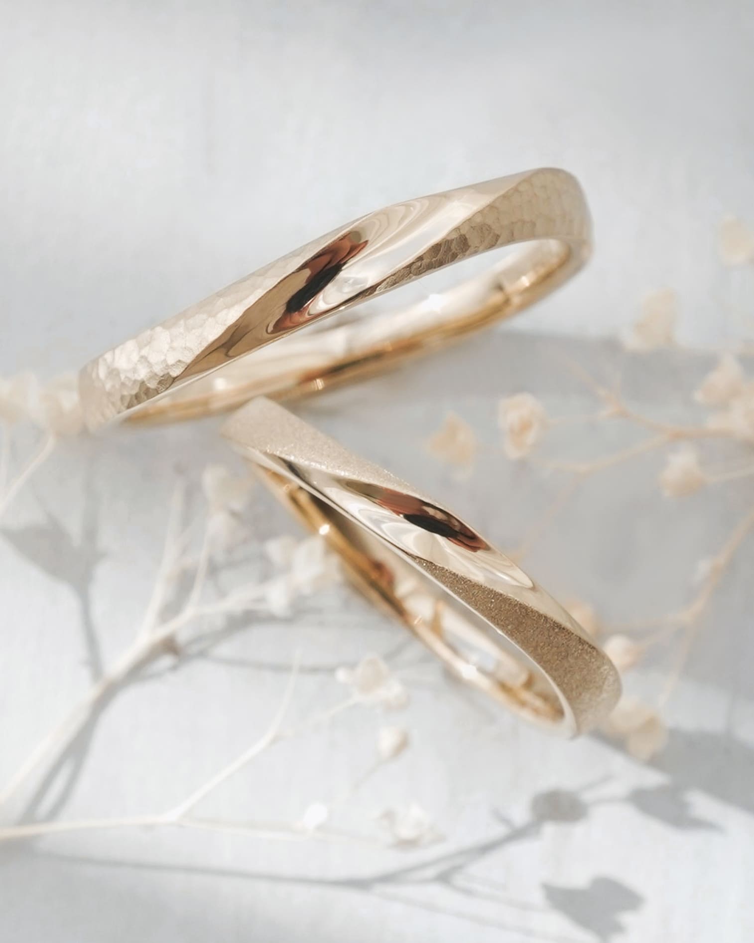 Men’s(左):K18シネマゴールド 最平均2.7mm 厚み平均1.7mm Lady’s(右):K18シネマゴールド 最大幅2.4mm 厚み平均1.6mm
