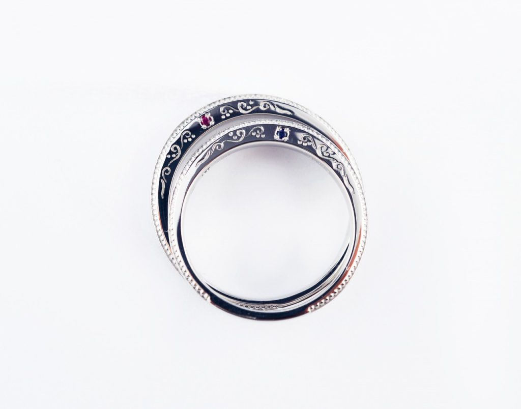 Men’sリングにはルビーを。Lady’sリングにはサファイヤを。