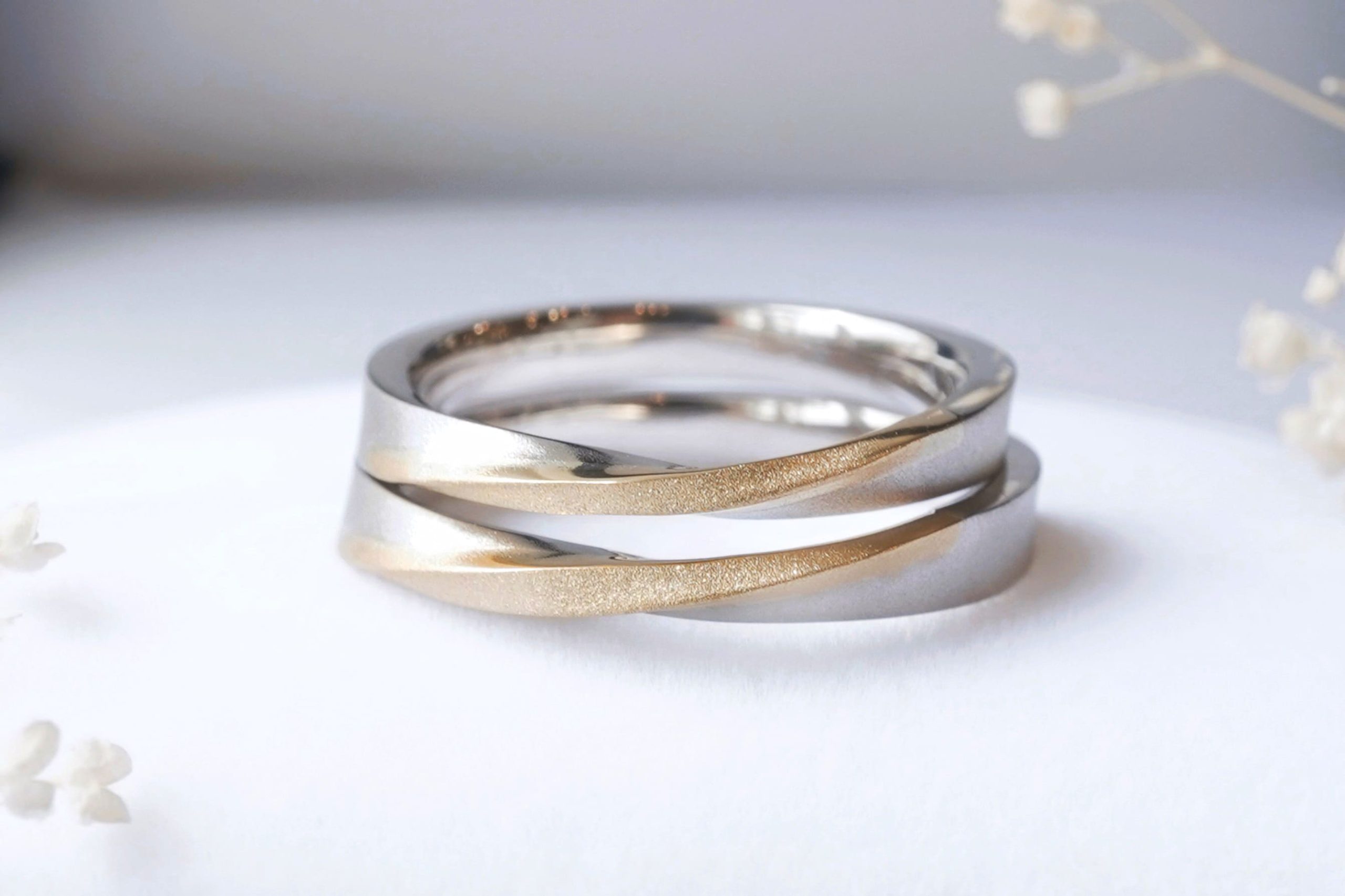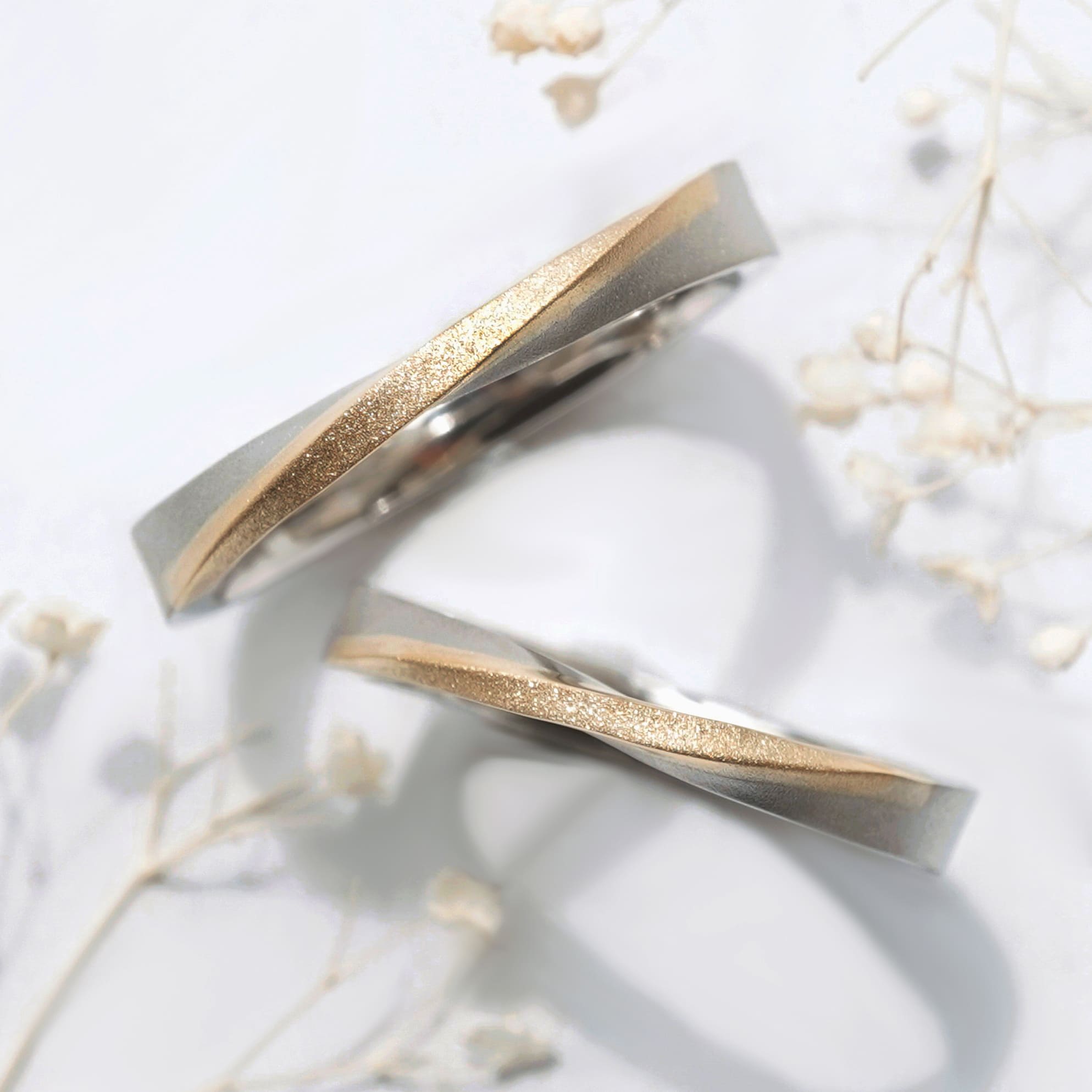 お好みの素材と表面加工を組み合わせ、おふたりお揃いのコンビネーションリングに。