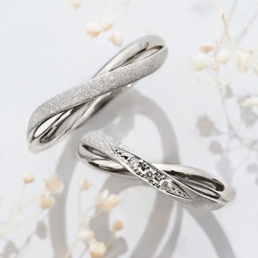 キラキラと輝くダイヤモンドパウダー加工を施したこのお揃いの指輪が、おふたりの特別な毎日にそっと寄り添い、これからの人生がさらに輝きに満ちたものとなりますよう、心より願っております。