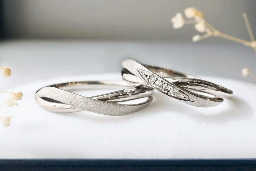 クロスしたデザインの結婚指輪