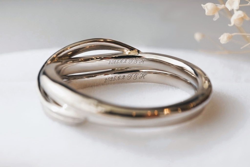指輪の内側には、おふたりの記念日とイニシャルがレーザーにて刻印されています。