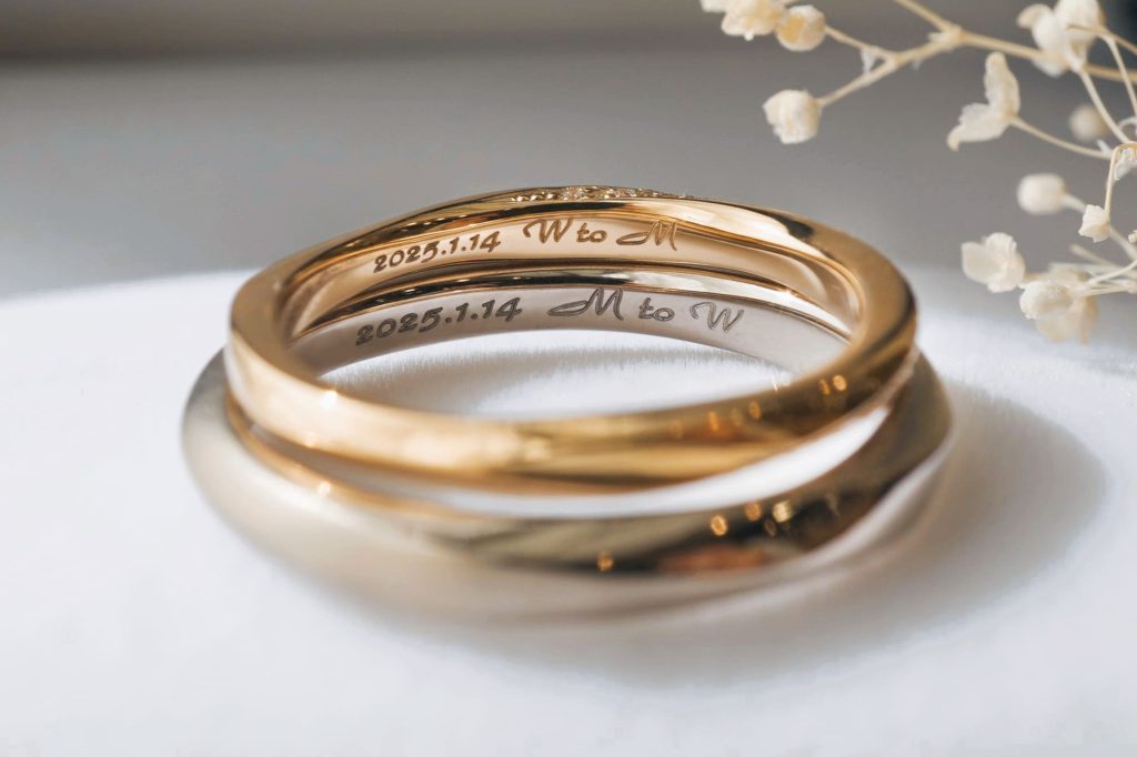 指輪の内側には、おふたりの記念日とイニシャルがレーザーにて刻印されています。