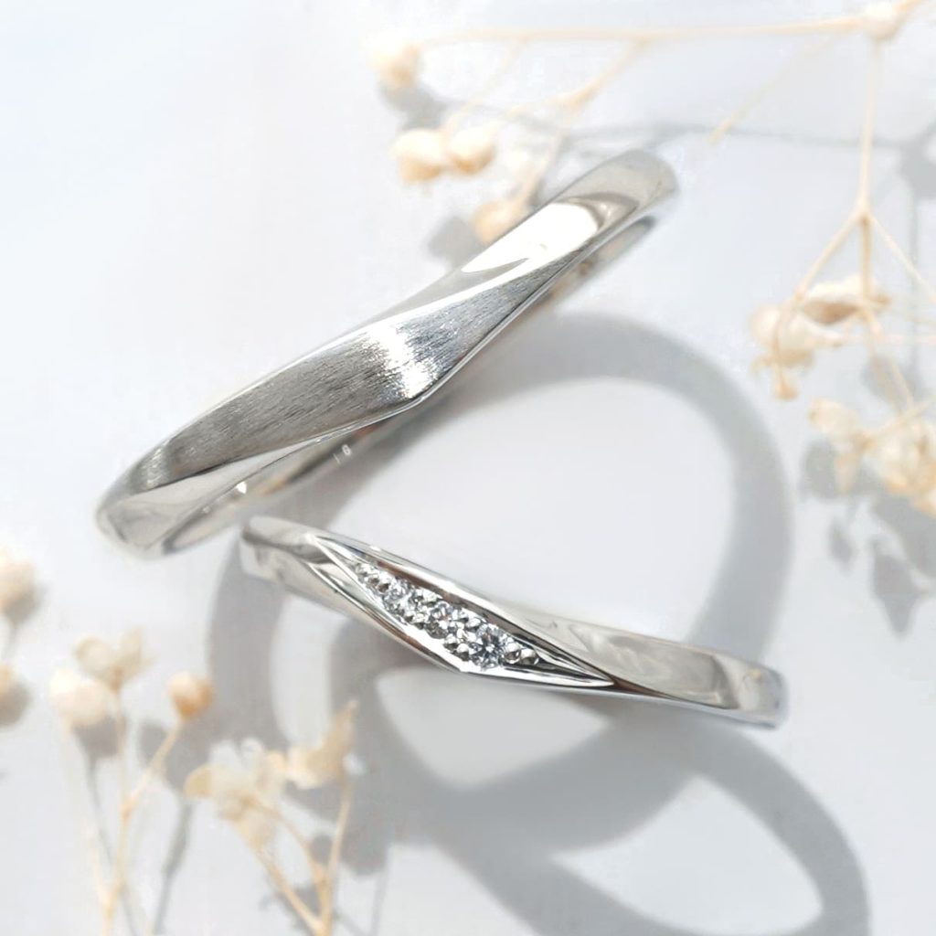 お揃いの素材とデザインで統一感を持たせながらも、表面加工にアレンジを加え、おふたりならではの個性をさりげなく表現できる指輪が出来上がりました。