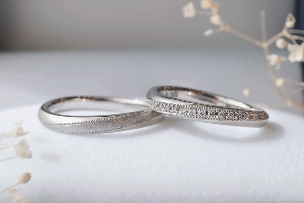 素材はどちらも婚約指輪と同じPt900素材で仕上げ、統一感を持たせました。