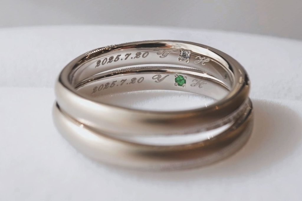 指輪の内側には、おふたりの記念日とイニシャルがレーザーにて刻印されています。
