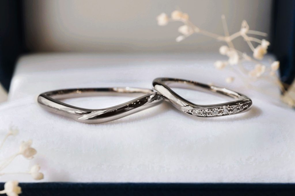 丸みのあるV字デザインの結婚指輪をオーダーいただきましたのでご紹介いたします。