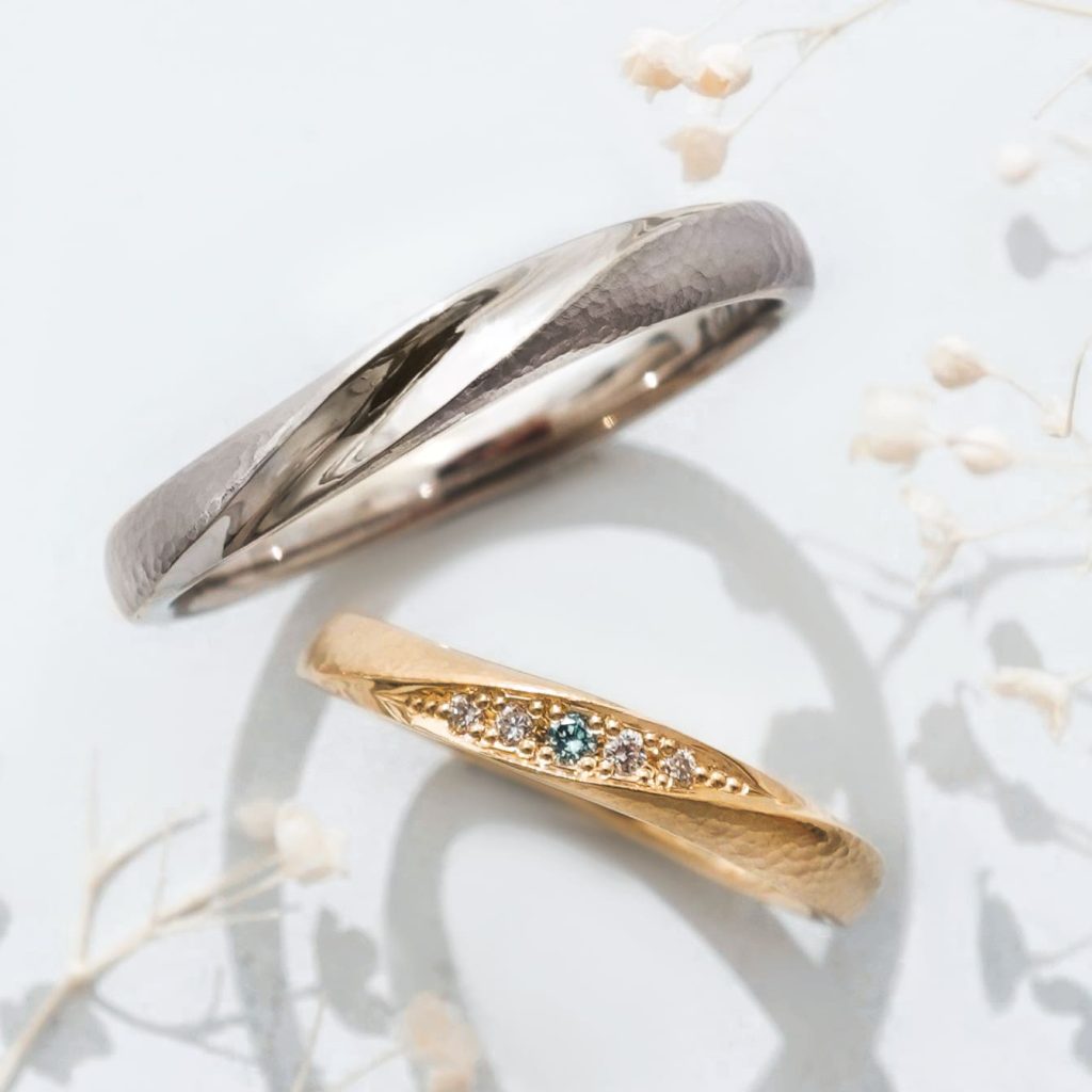 細かい槌目模様が特徴の結婚指輪をオーダーいただきましたのでご紹介いたします。