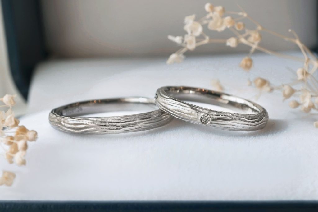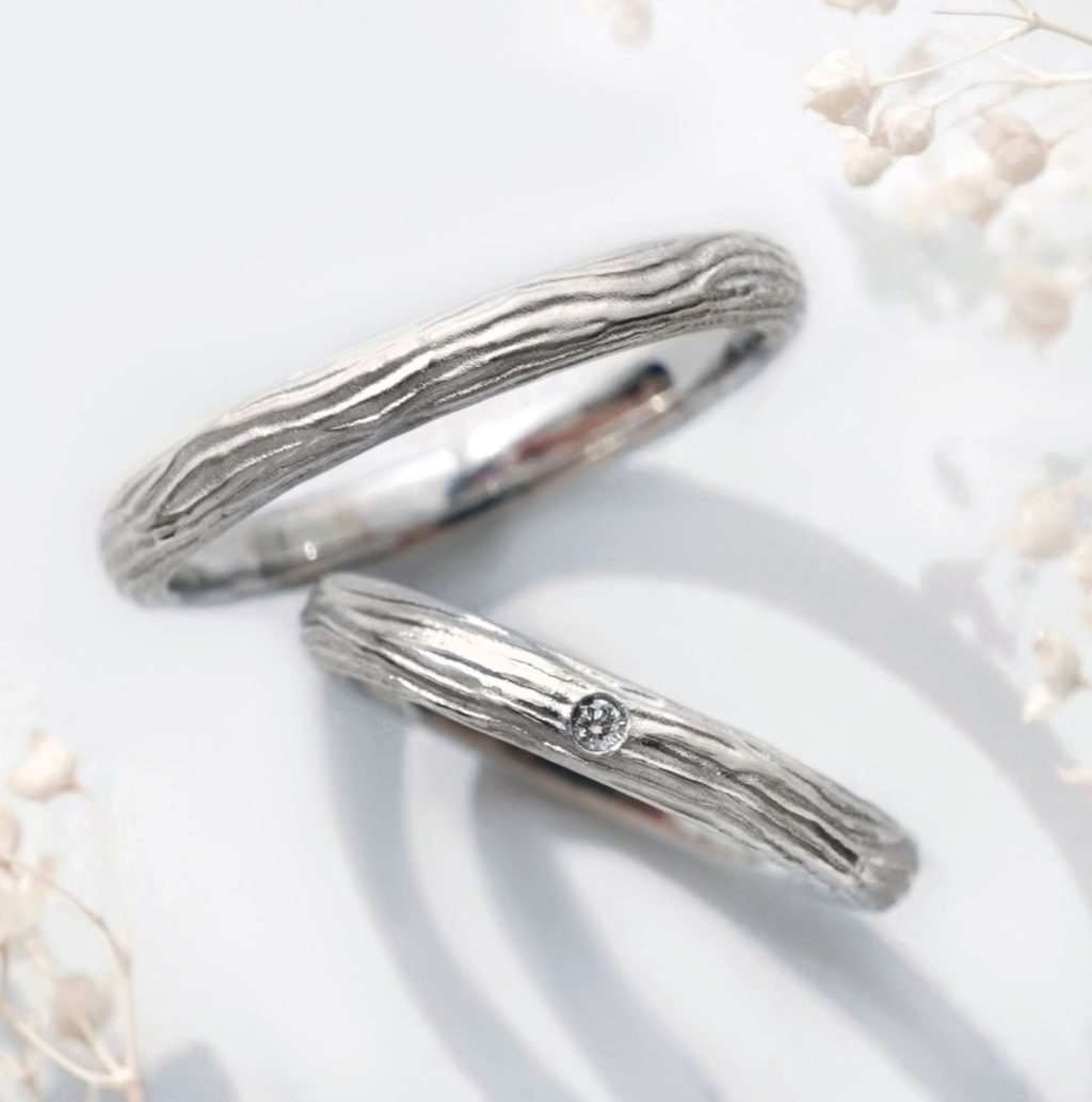 横筋の木目模様が特徴の結婚指輪をオーダーいただきましたのでご紹介いたします。