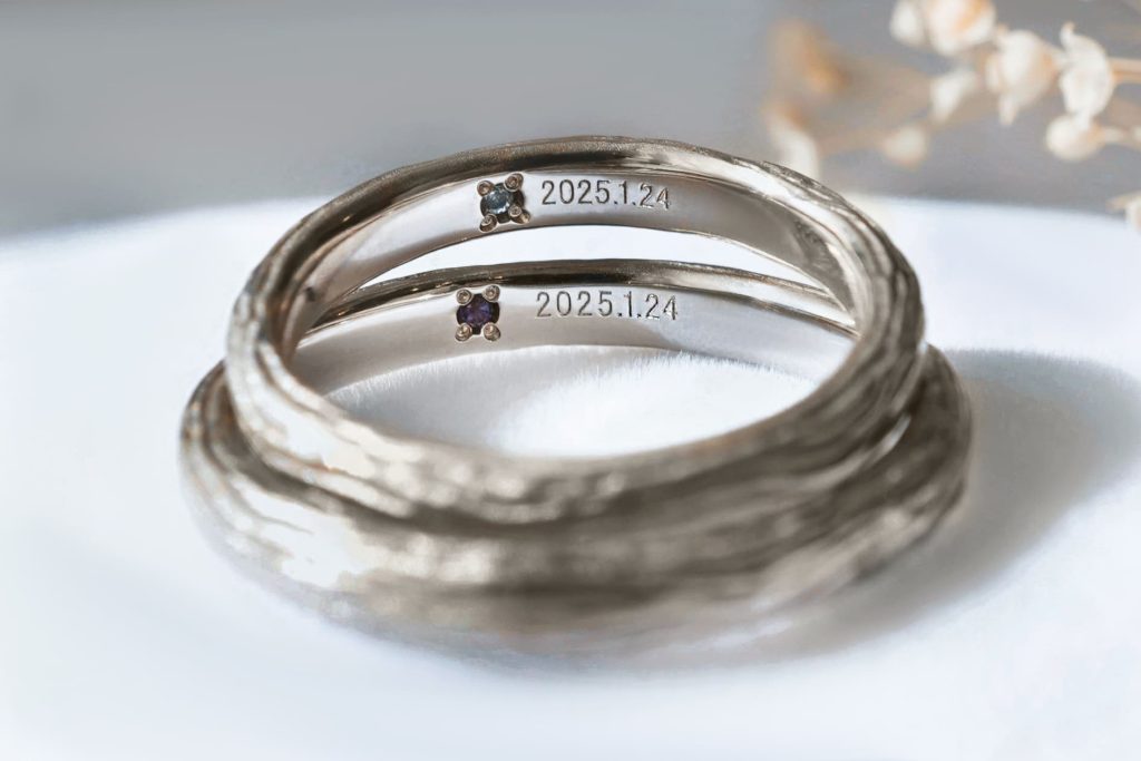 指輪の内側には、おふたりの記念日がレーザーにて刻印されています。