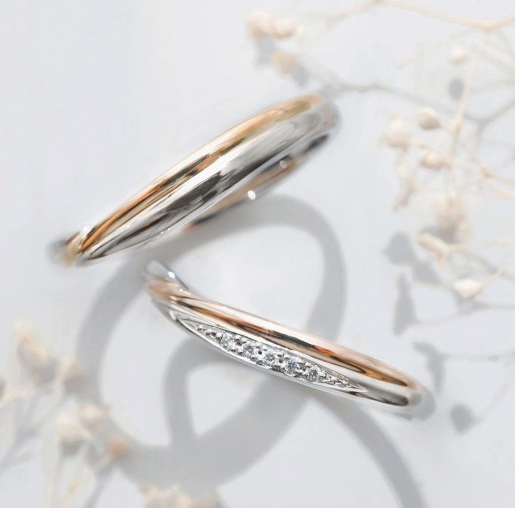 異素材を組み合わせたウェーブデザインの結婚指輪をオーダーいただきましたのでご紹介いたします。
