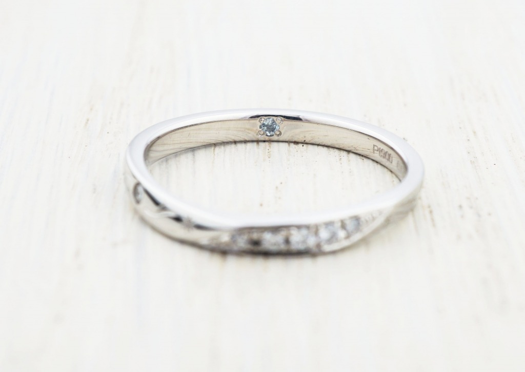 表面のひねりの部分に5石ダイヤモンドを。
