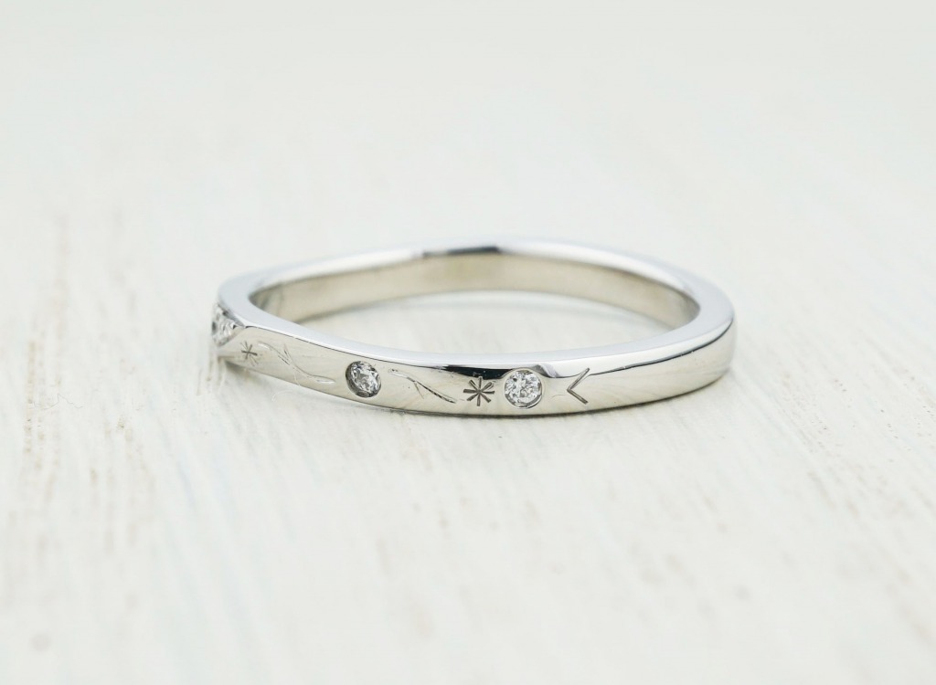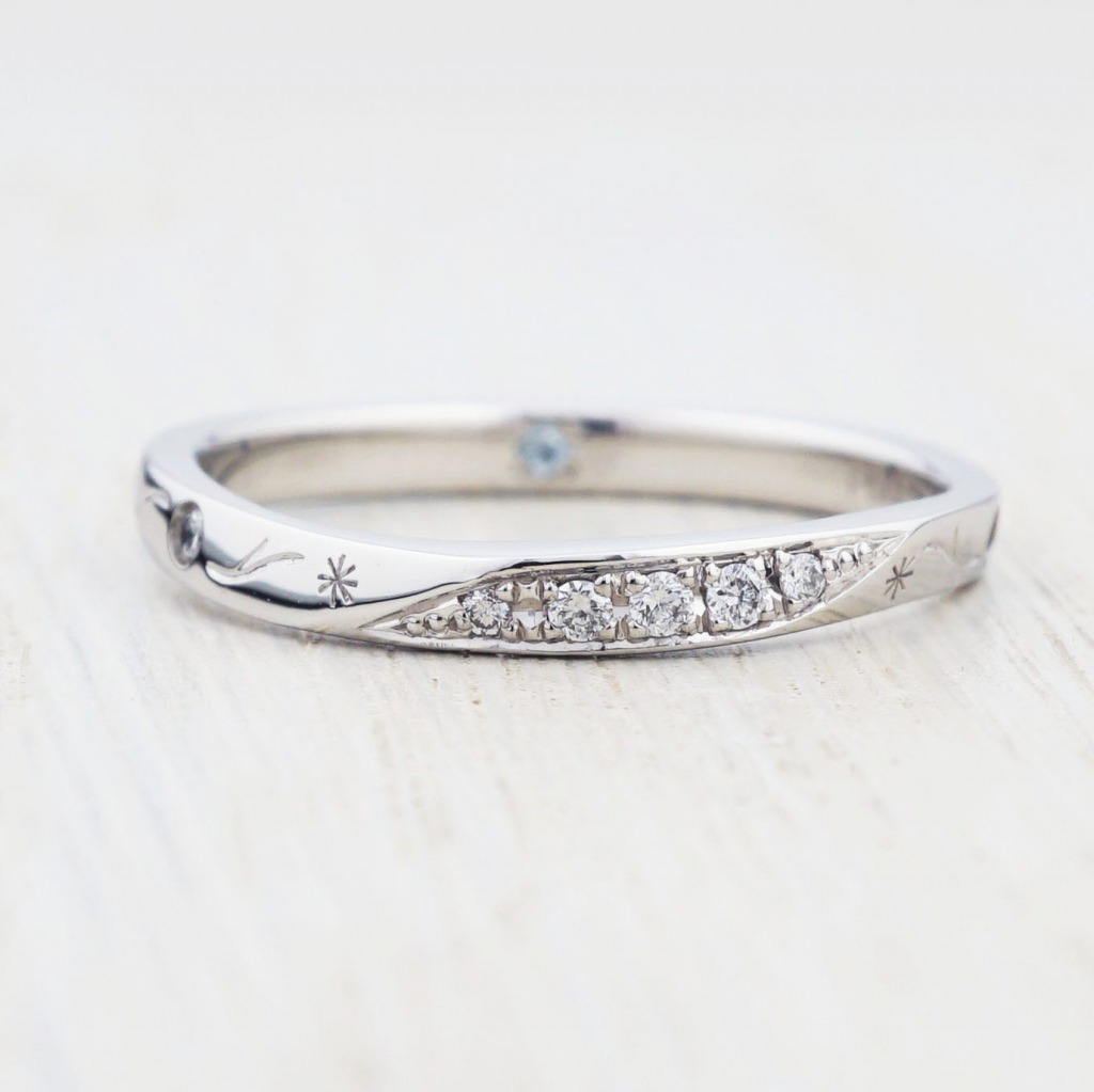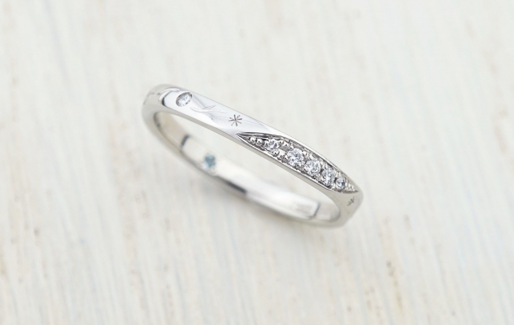 奥様はフィギアスケートが好きなので、指輪にどうにか施せないか試行錯誤しました。