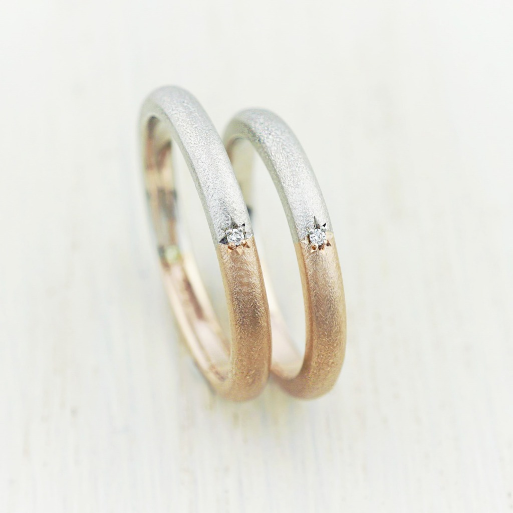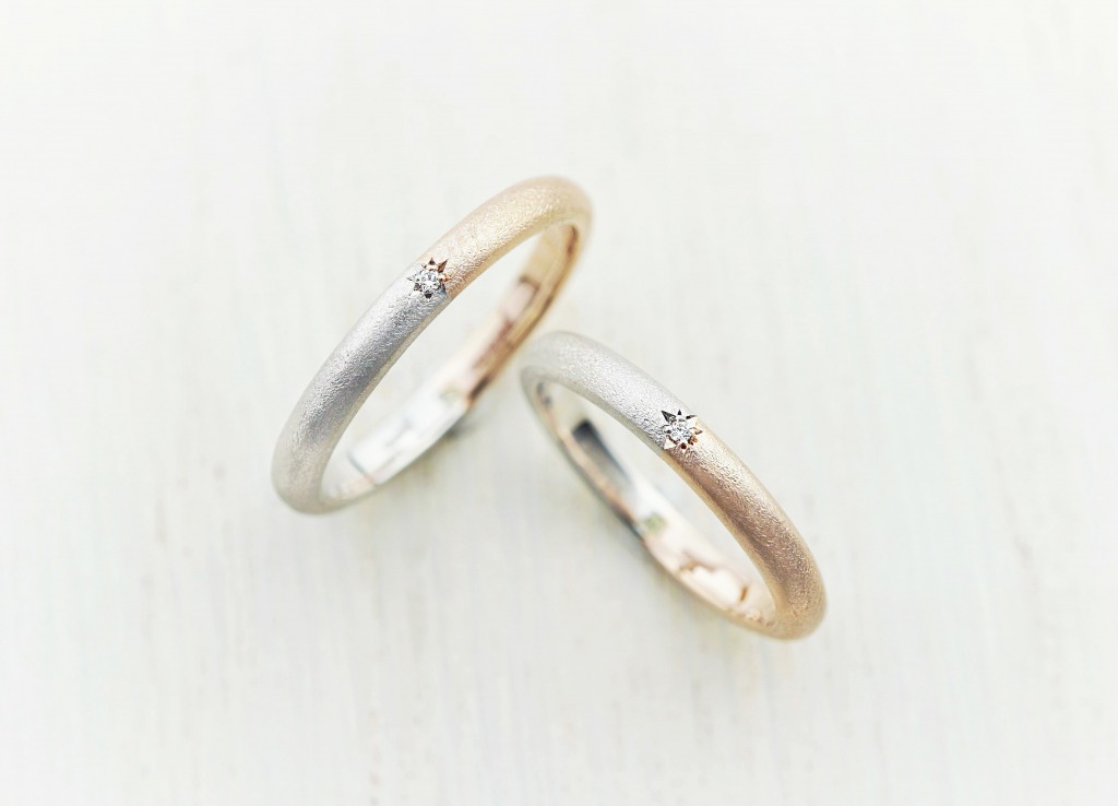 コンビネーションで梨地加工が優しい雰囲気を醸し出すリング、ツインズをアレンジしていただきました。