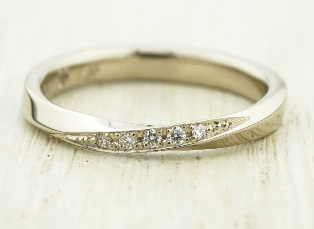 奥様はシンプルにダイヤモンドを5石留め、上品な印象です。