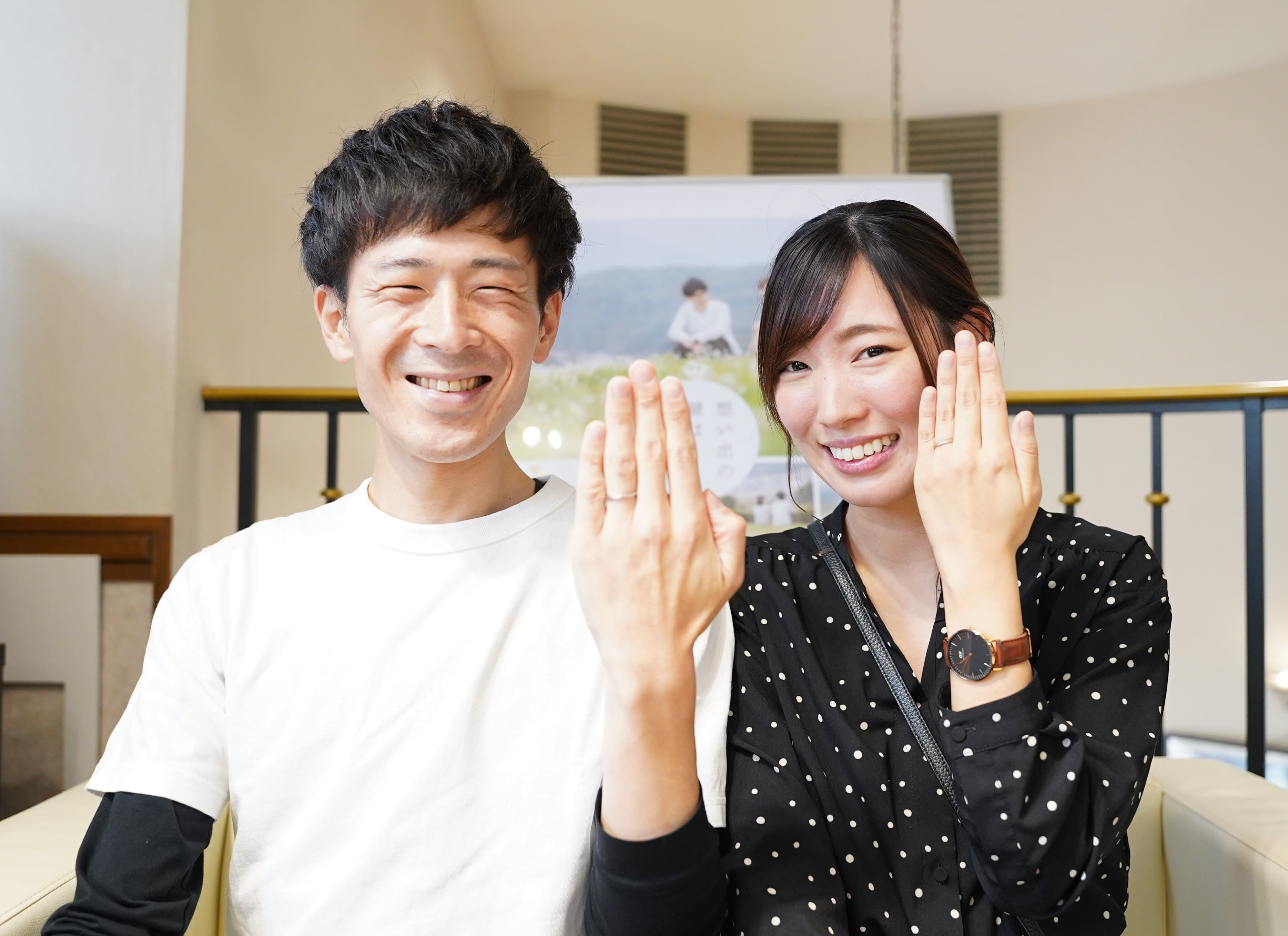 それぞれプラチナとシャンパンゴールドで素材も異なりますが、お気に召していただいた素材でお決めいただきました。