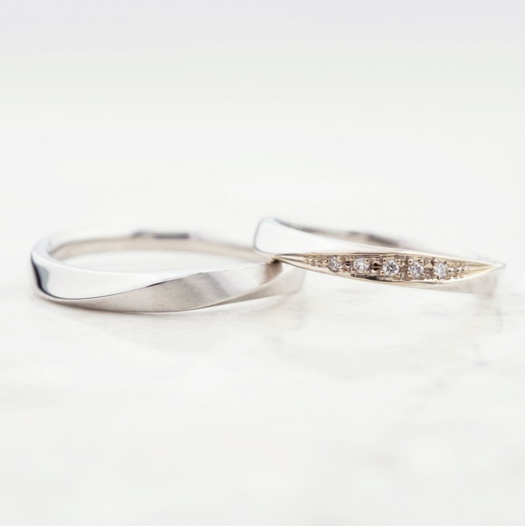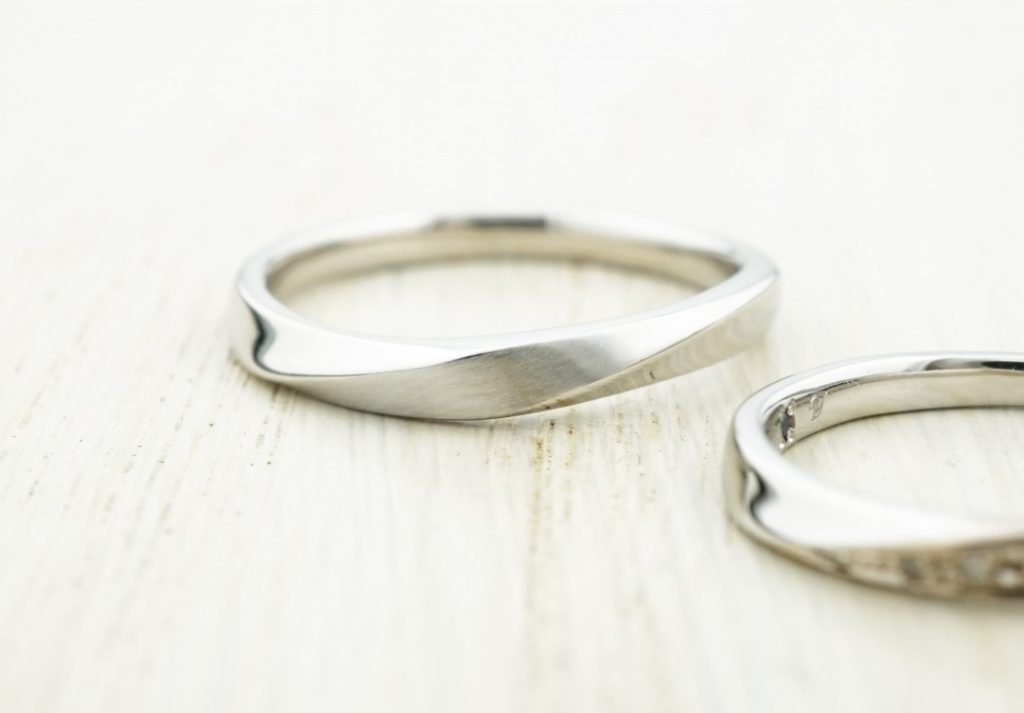 ひねりのラインにオリジナルの加工を施したセミオーダーの結婚指輪