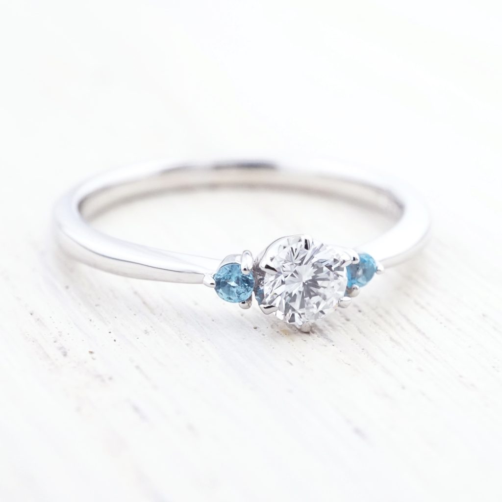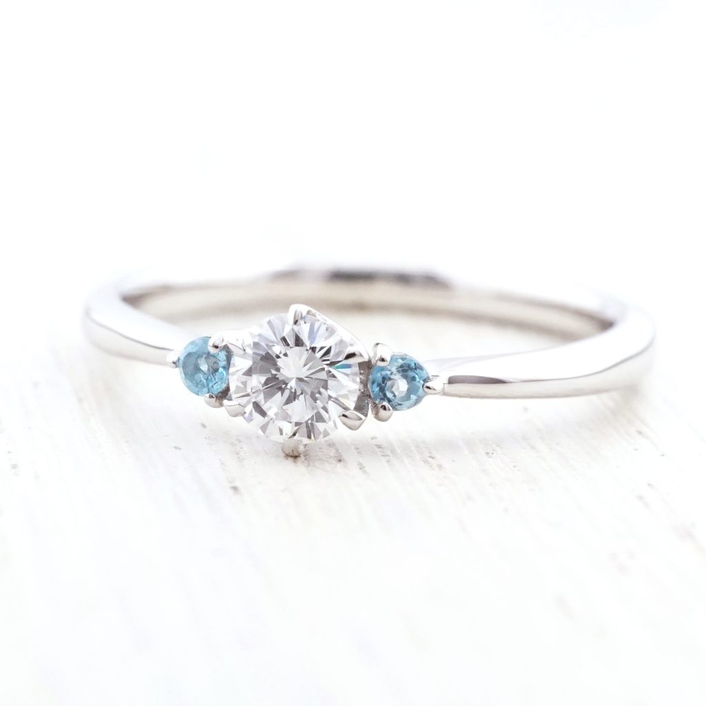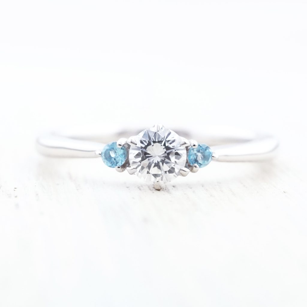 彼女の誕生石ブルートパーズを両脇に添えて
