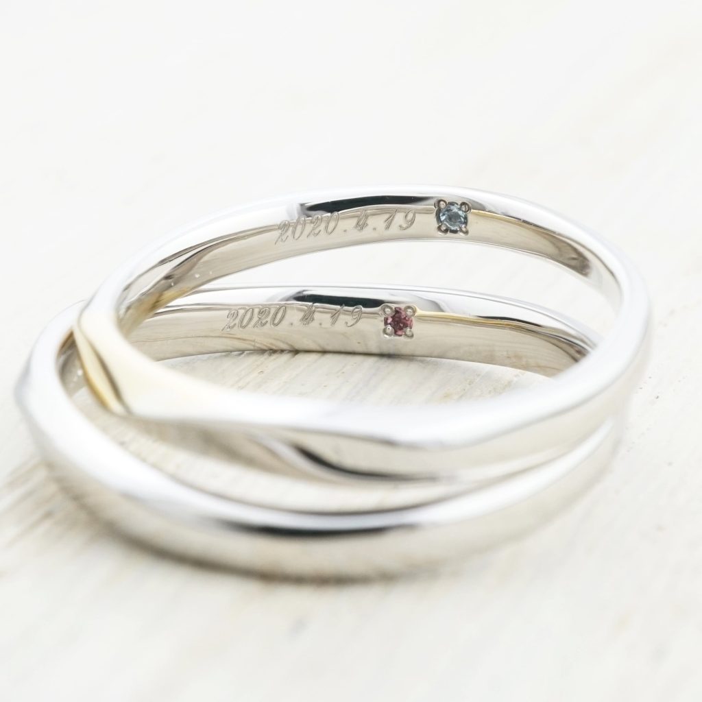 内側には結婚記念日と、お互いの誕生石を埋め込んでいます。