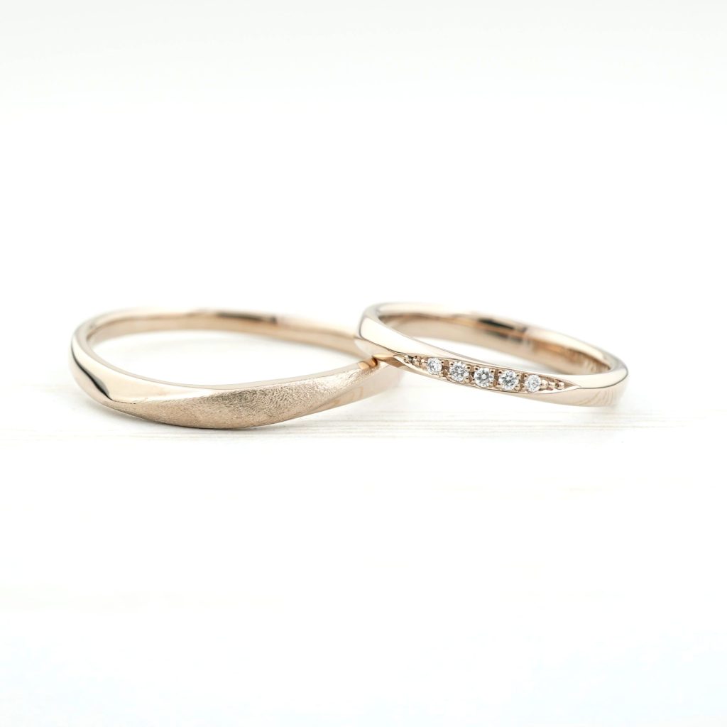 奥様の指輪はK18シャンパンゴールドのルミナ(ダイヤモンド付)。