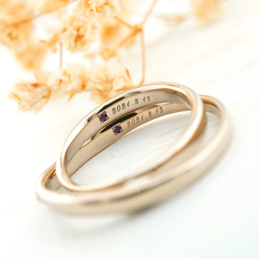 内側には入籍日と2月の誕生石アメジストを留めています。