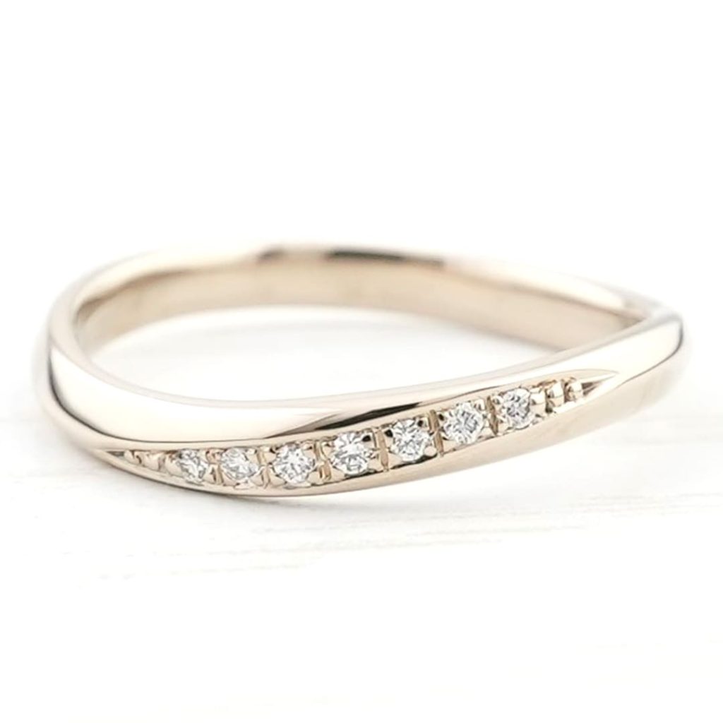 ダイヤモンドはウェーブに沿って留めています。