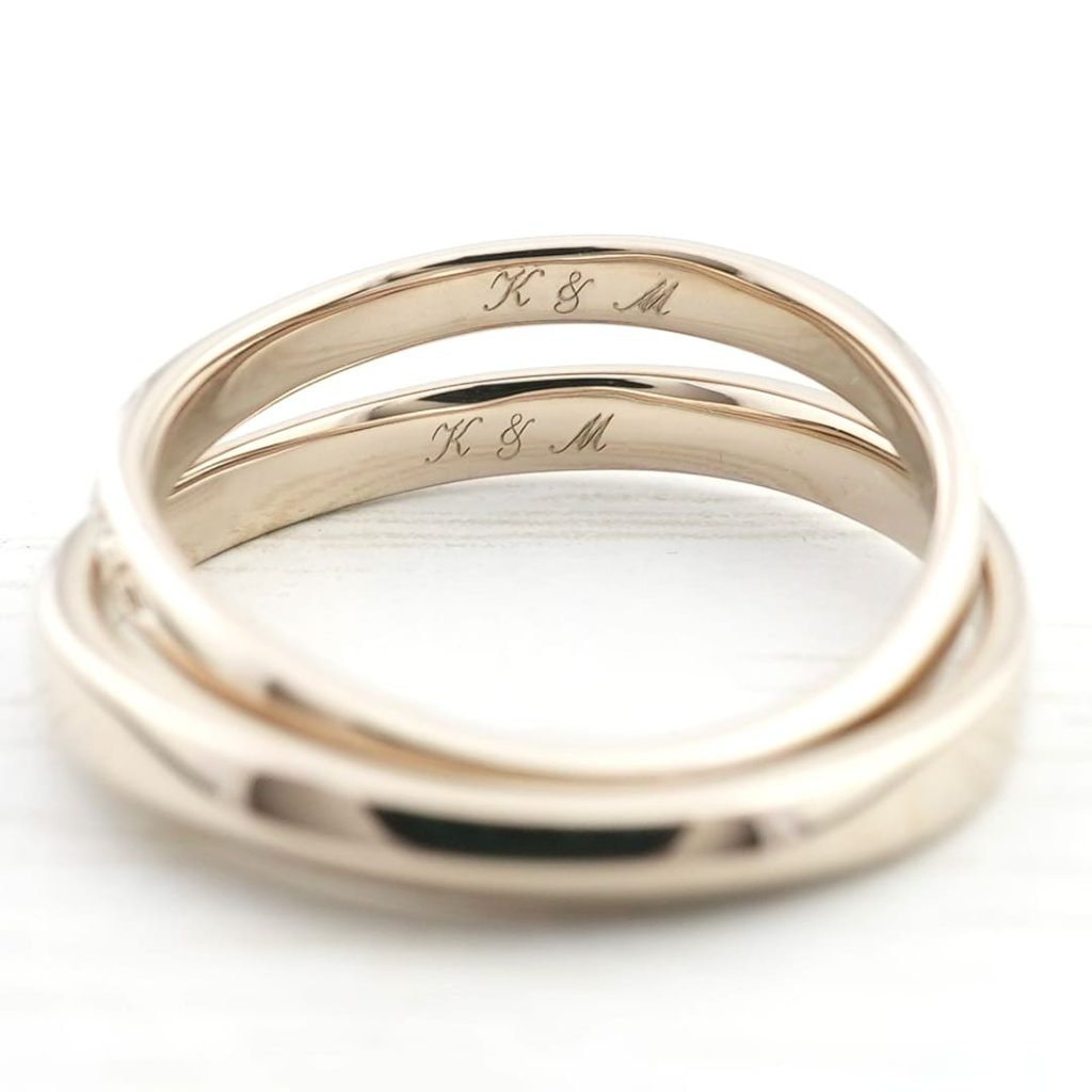 内側にはお互いのイニシャルを筆記体で入れています。