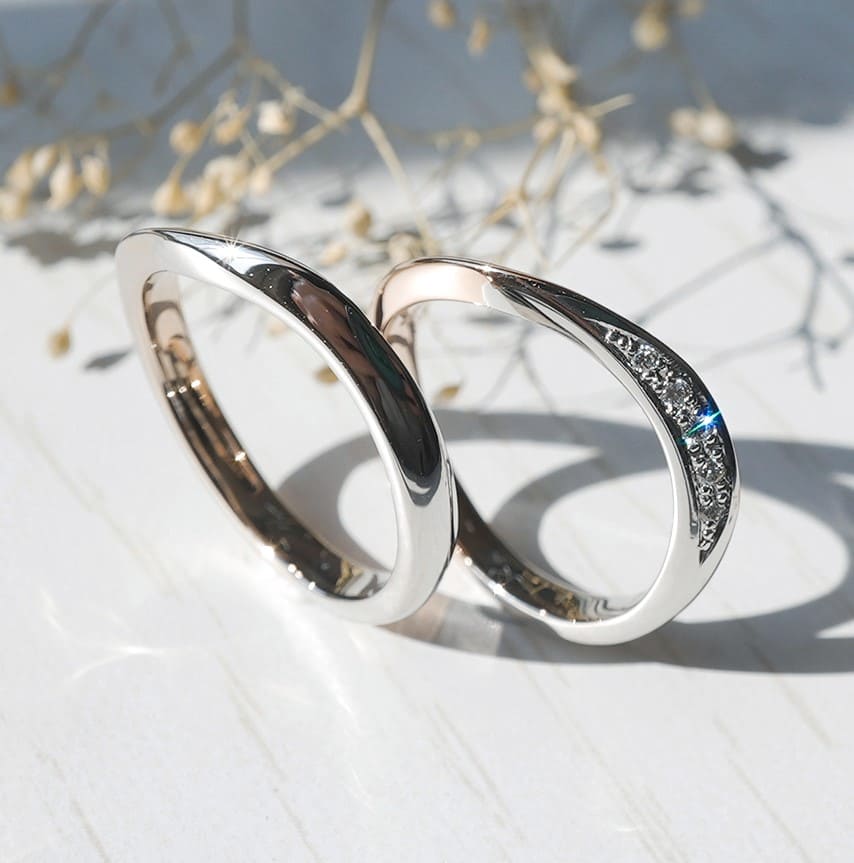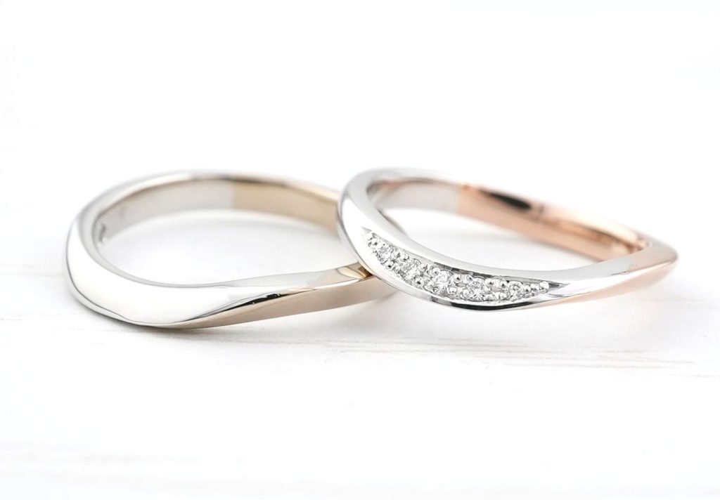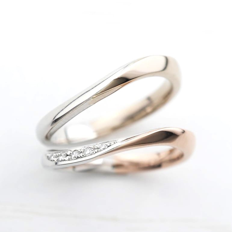 右側の奥様リングはPT900とK18ピンクゴールド素材の組み合わせです。