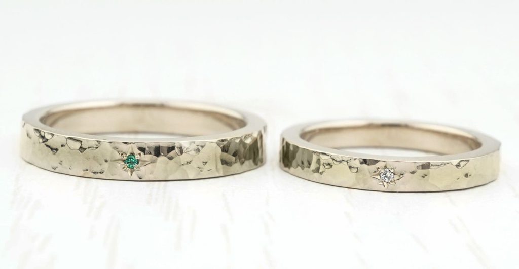 小さな鎚目模様が可愛らしい結婚指輪をご紹介します。