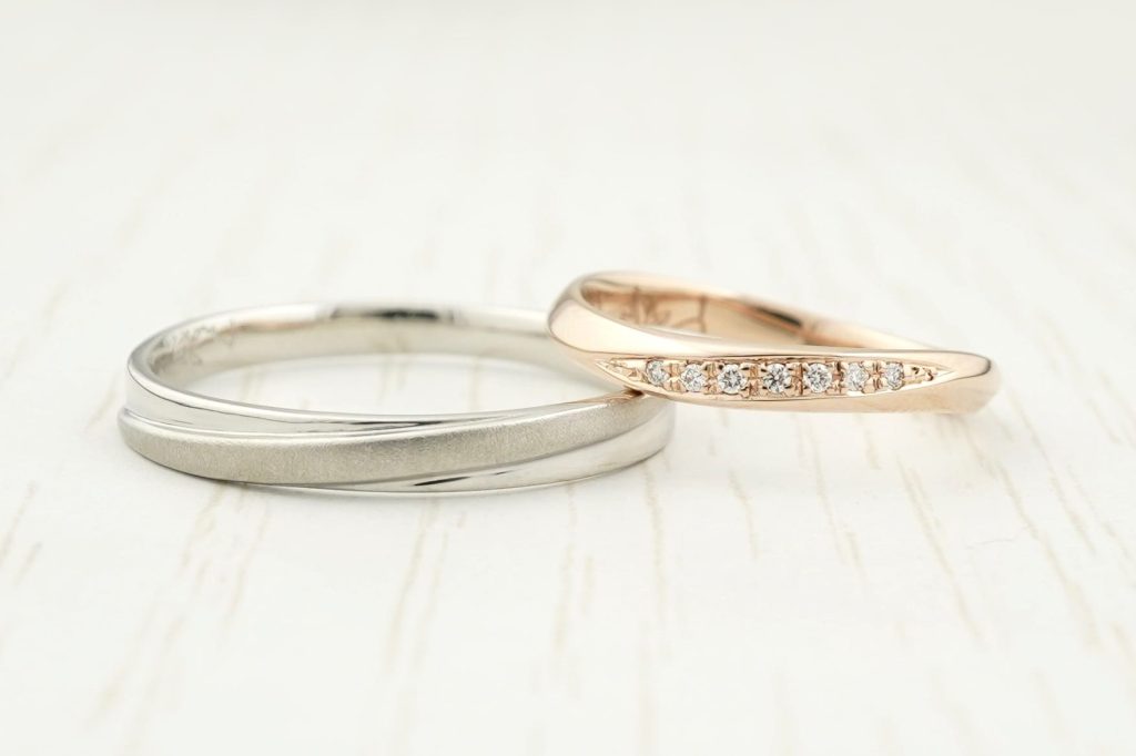 旦那様はプラチナ900素材、奥様はK18ピンクゴールド素材です。