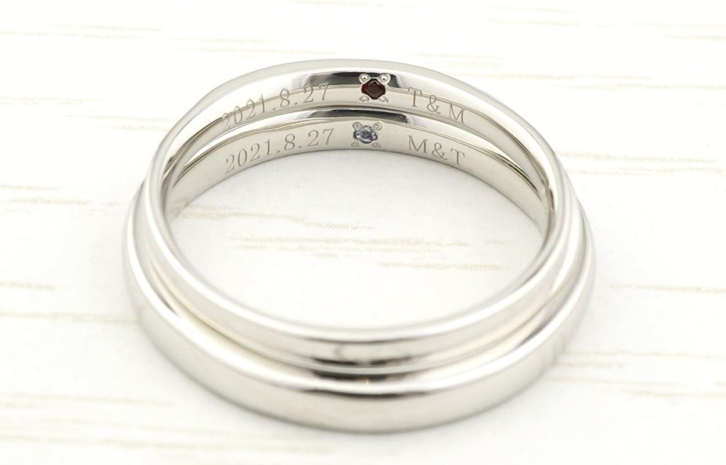 内側は記念日とイニシャルをレーザー明朝体でお入れしています。