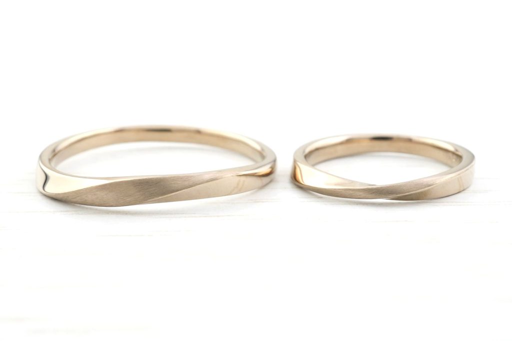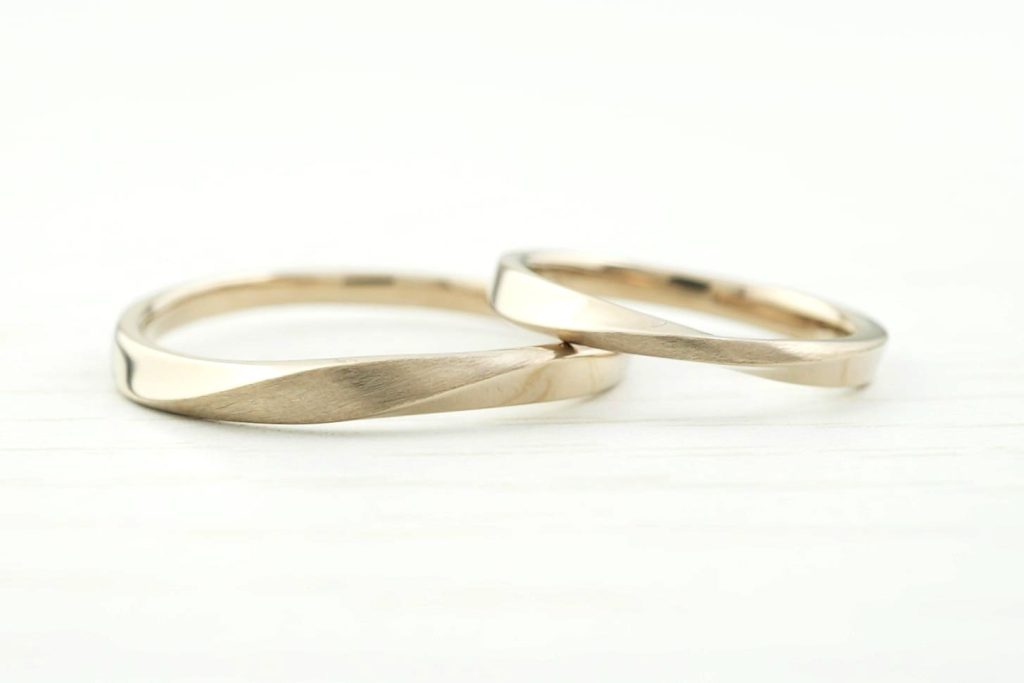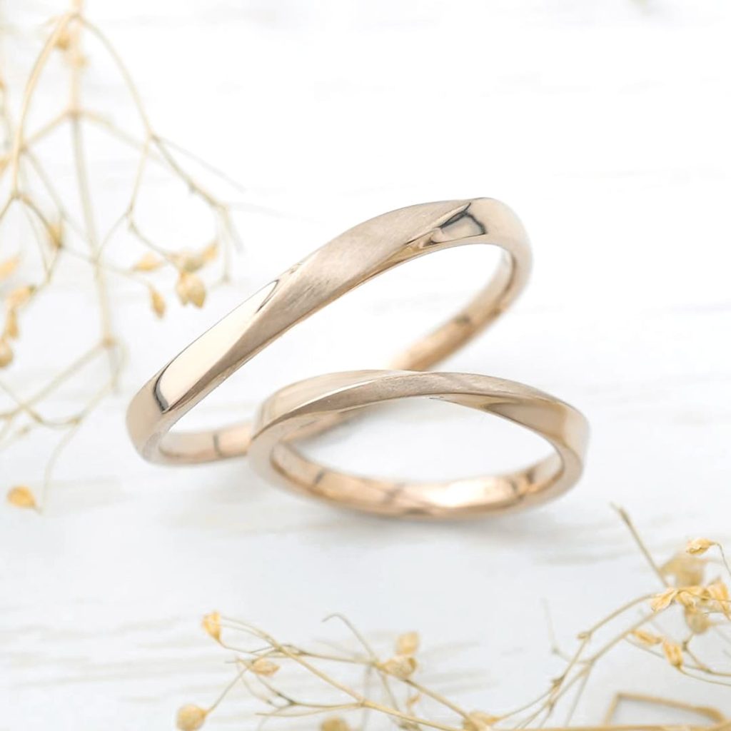 シャンパンゴールドとひねりにこだわってオーダーした結婚指輪をご紹介致します。